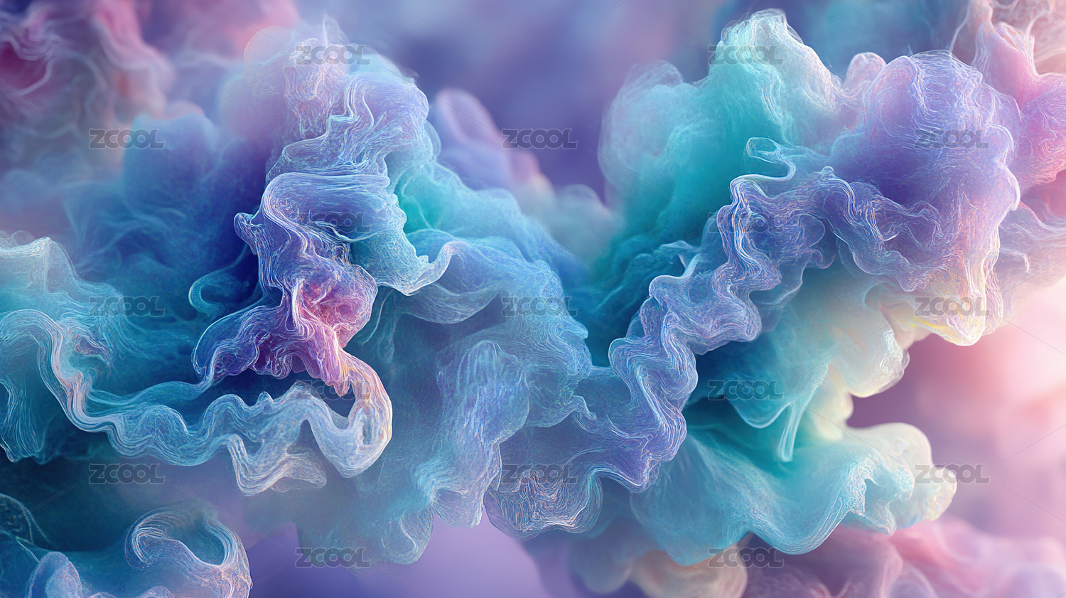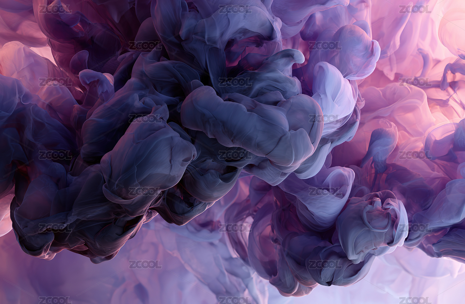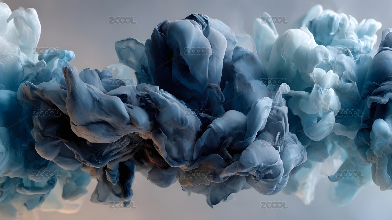 蓝色烟雾在水中弥漫着朦胧梦幻感