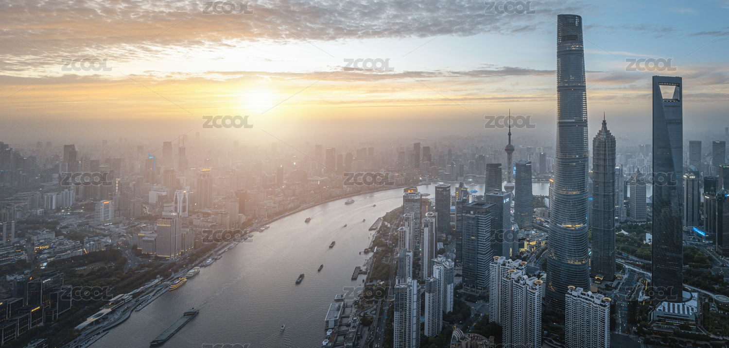 航拍上海地标建筑陆家嘴城市天际线全景风光