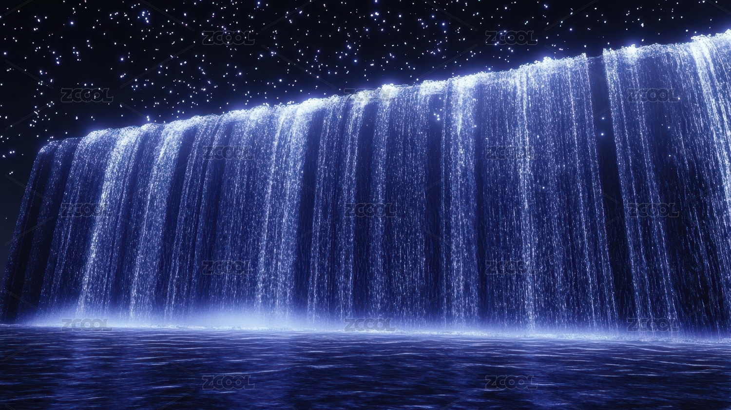 梦幻蓝色瀑布星空