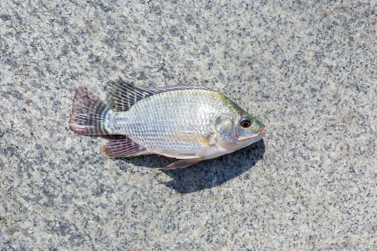 大理石上一条活的罗非鱼