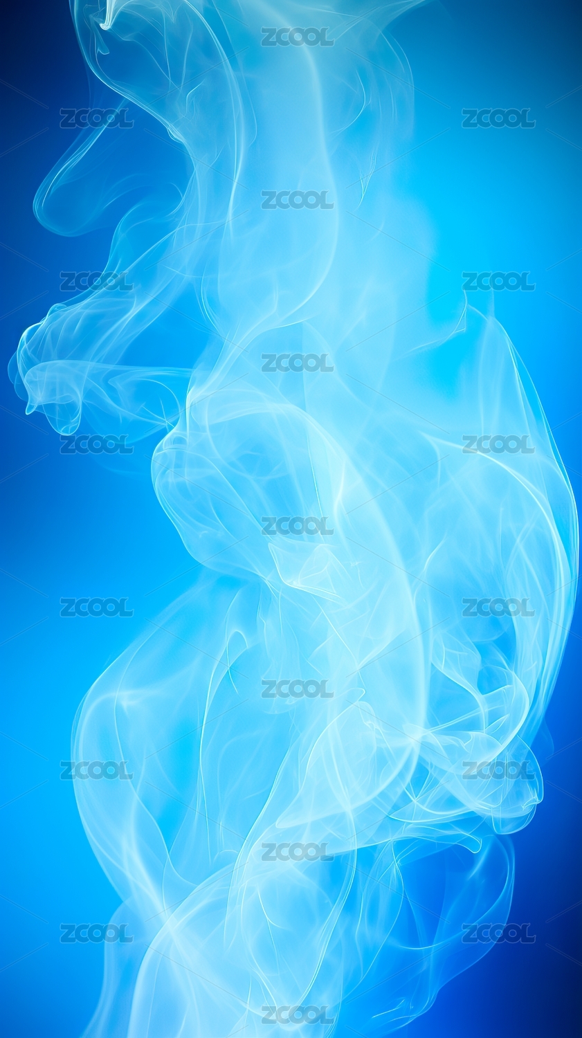 蓝色烟雾在黑色背景中飘散抽象艺术