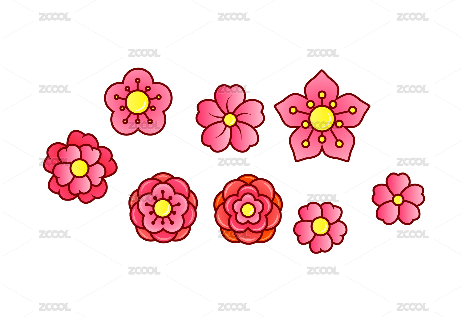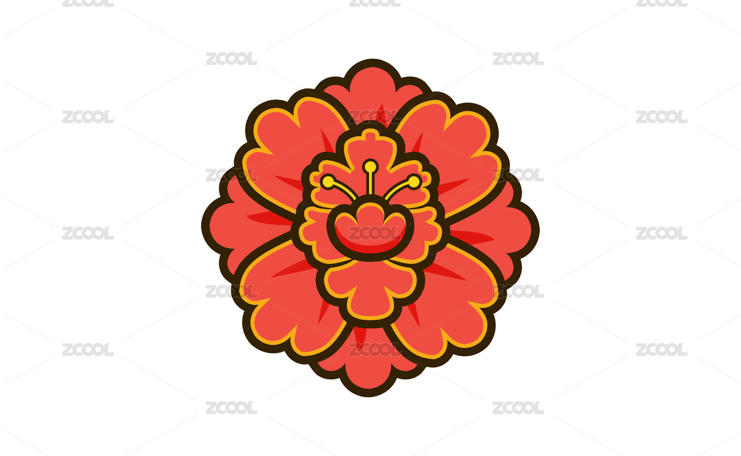 国风,扁平,描边,牡丹花,牡丹,图案,装饰,简笔画,喜庆