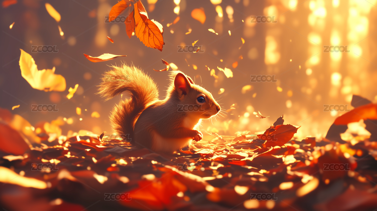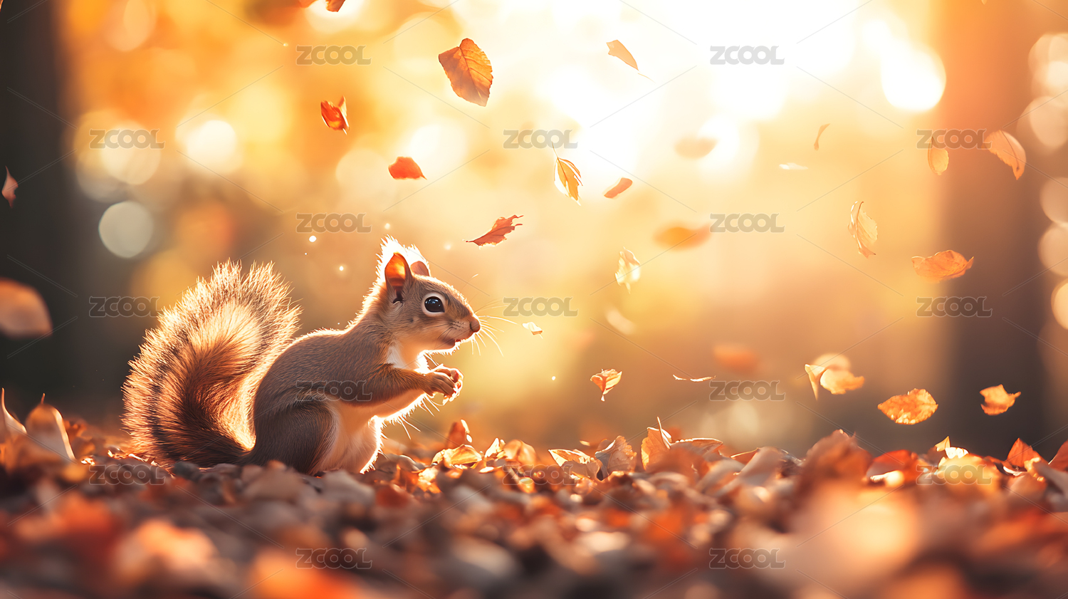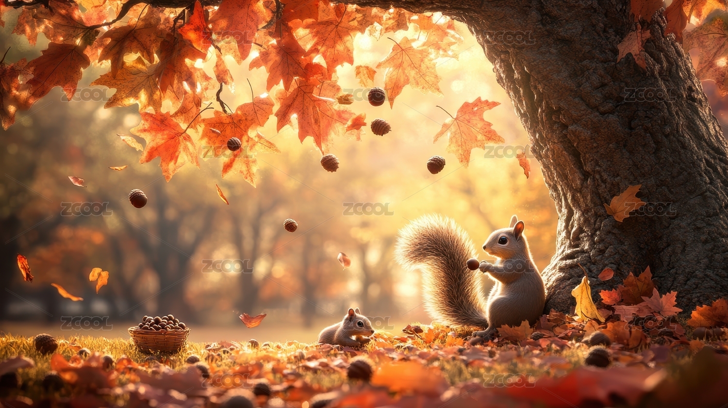 秋天,秋季,秋分,寒露,丰收,落叶,金黄,枫叶,松鼠,地