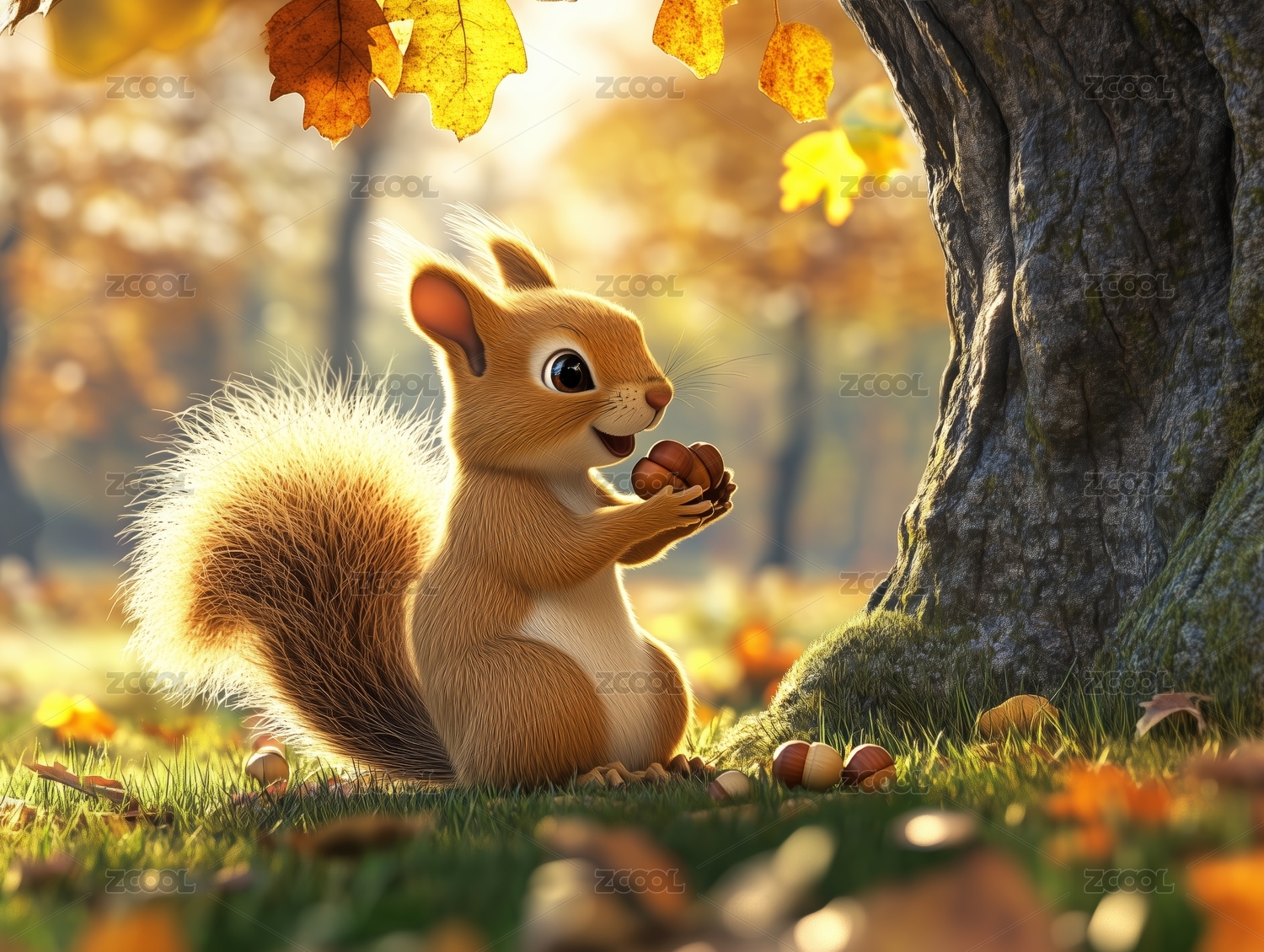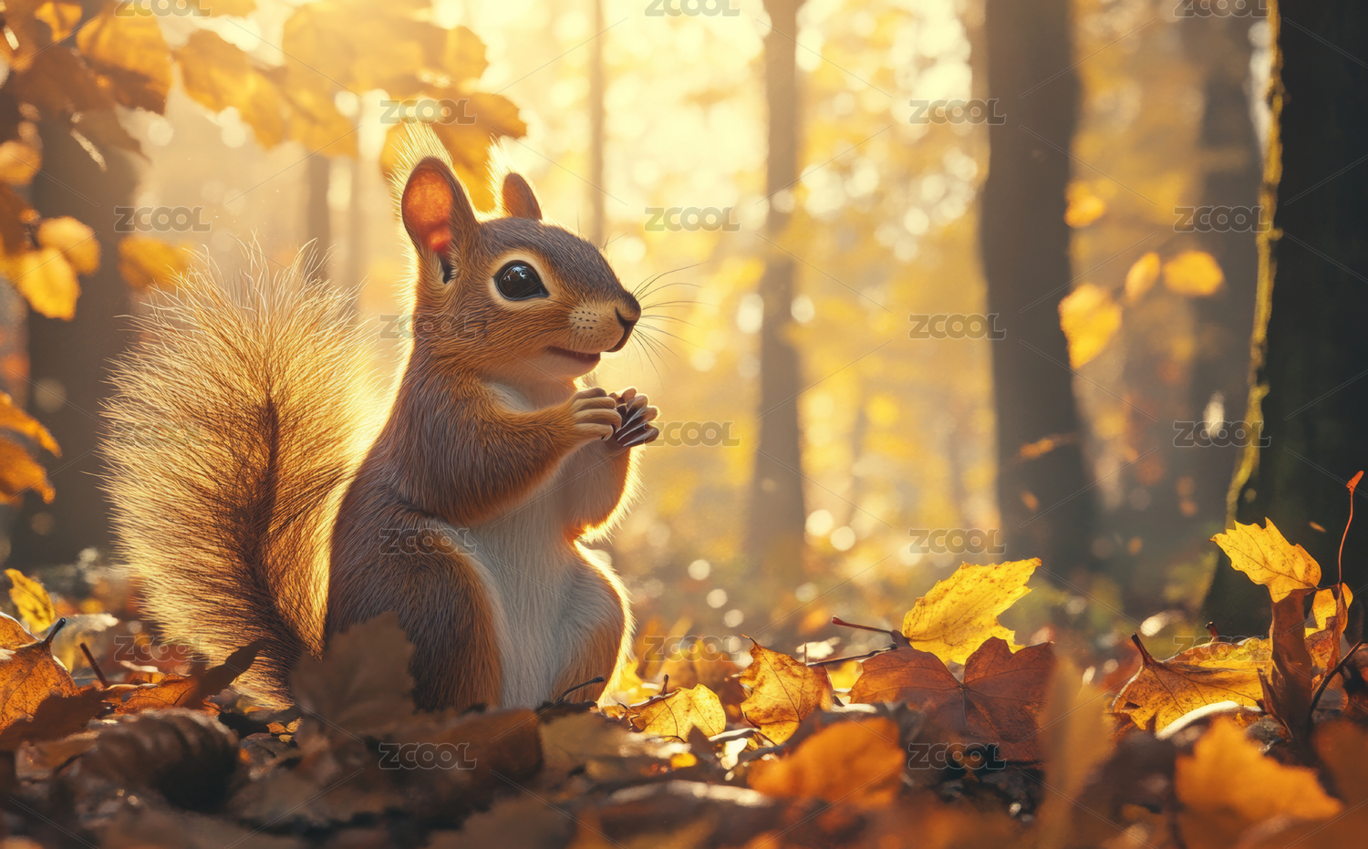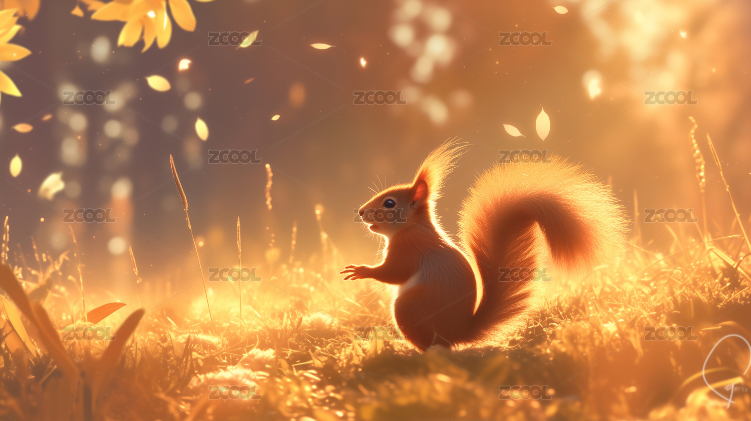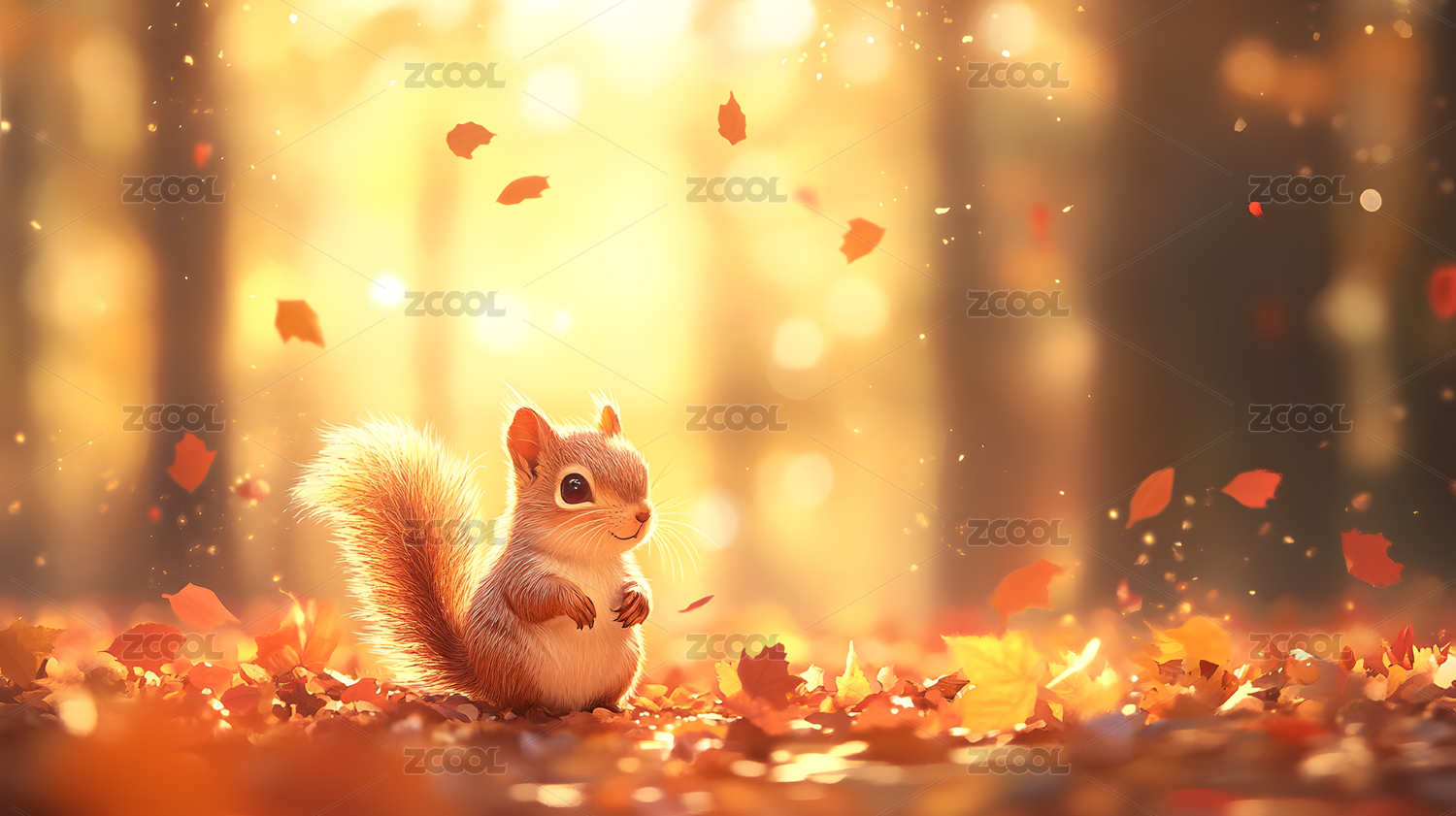 秋天,秋季,秋分,寒露,丰收,落叶,金黄,枫叶,松鼠,地