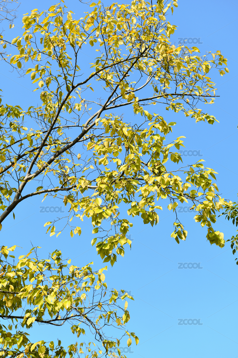 黄叶蓝天背景