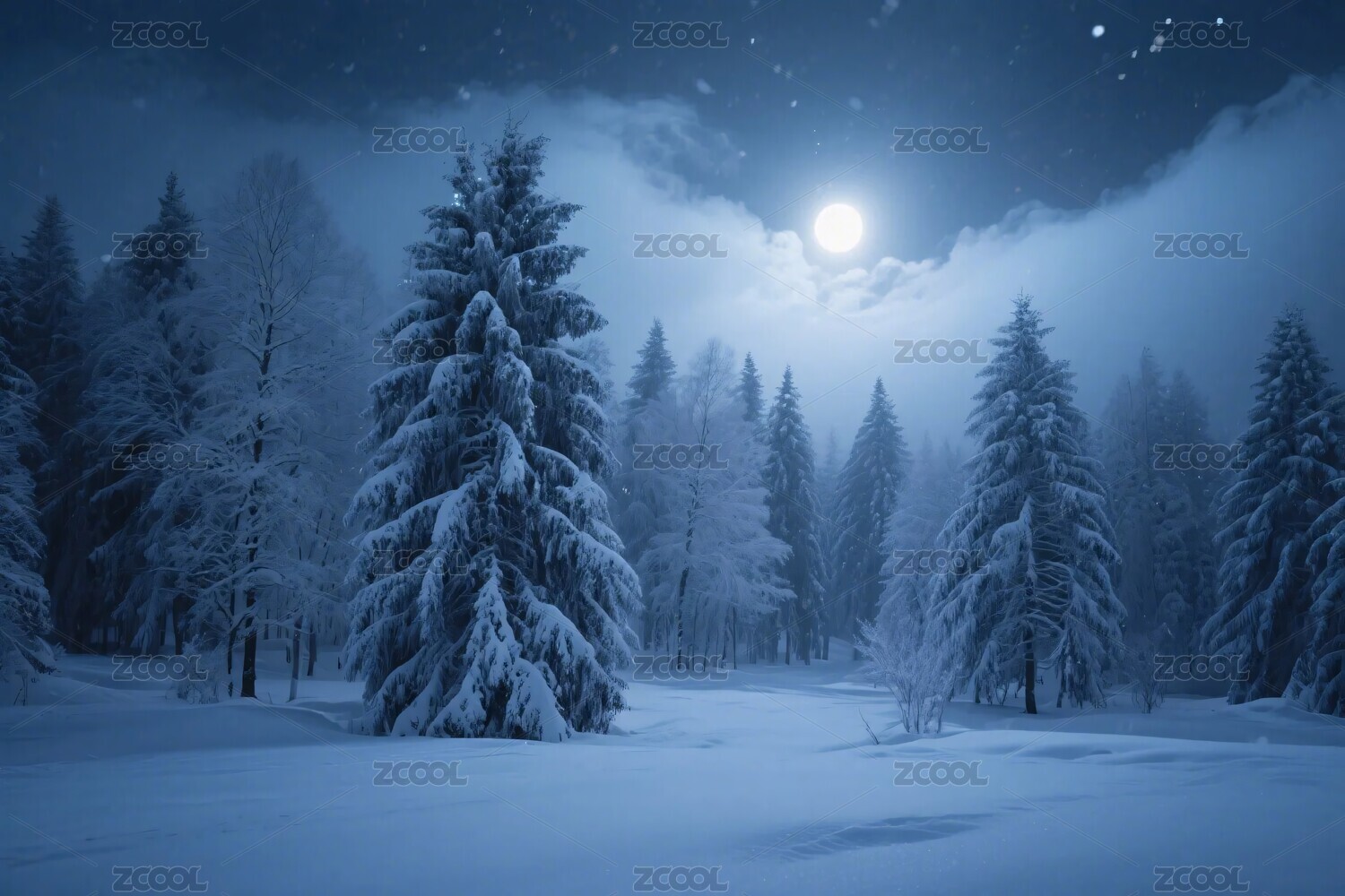 冰雪森林月光雪景