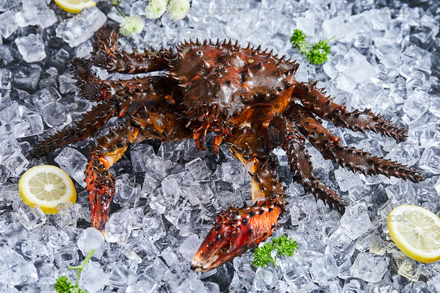 黑色背景,海鲜,柠檬,蟹,冰块,阿拉斯加长脚蟹,帝皇蟹,帝王蟹,高端海鲜,海蟹
