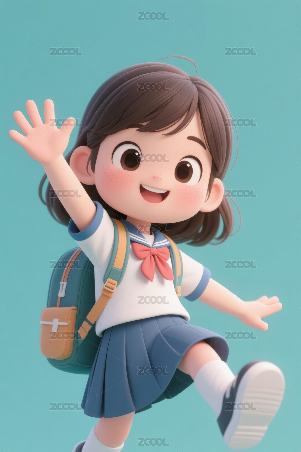 卡通,女孩,白鞋,学生,校服,短裙,白袜,条纹袜,开心
