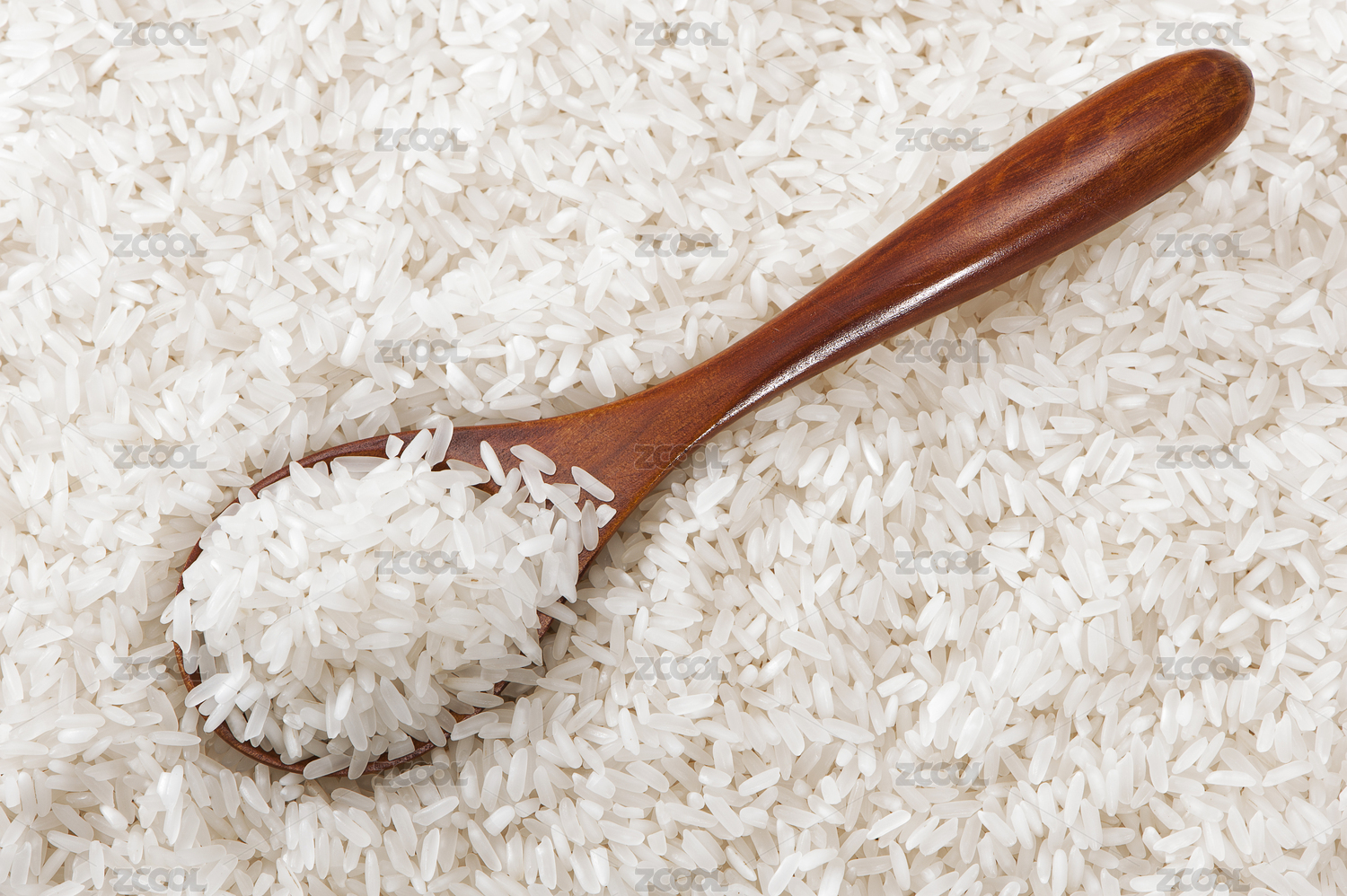木勺上放着大米
