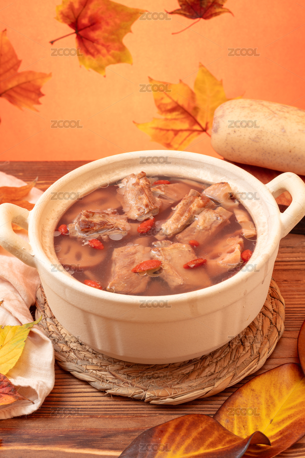 鸡汤,香菇,杏鲍菇,老火靓汤,干货,西兰花,勺子,刀叉,木板,花菇