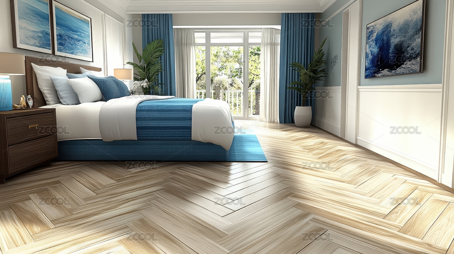 宁静的蓝色卧室