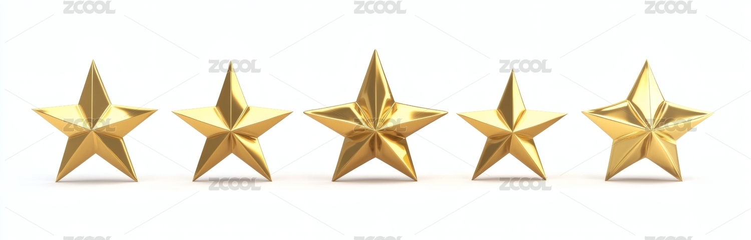 五颗金色立体五角星排列