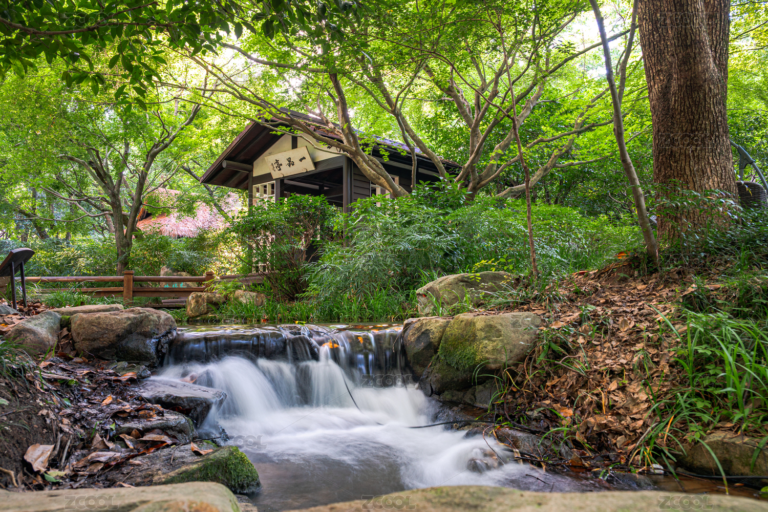 阳光瀑布树林与茶室 杭州茶叶博物馆