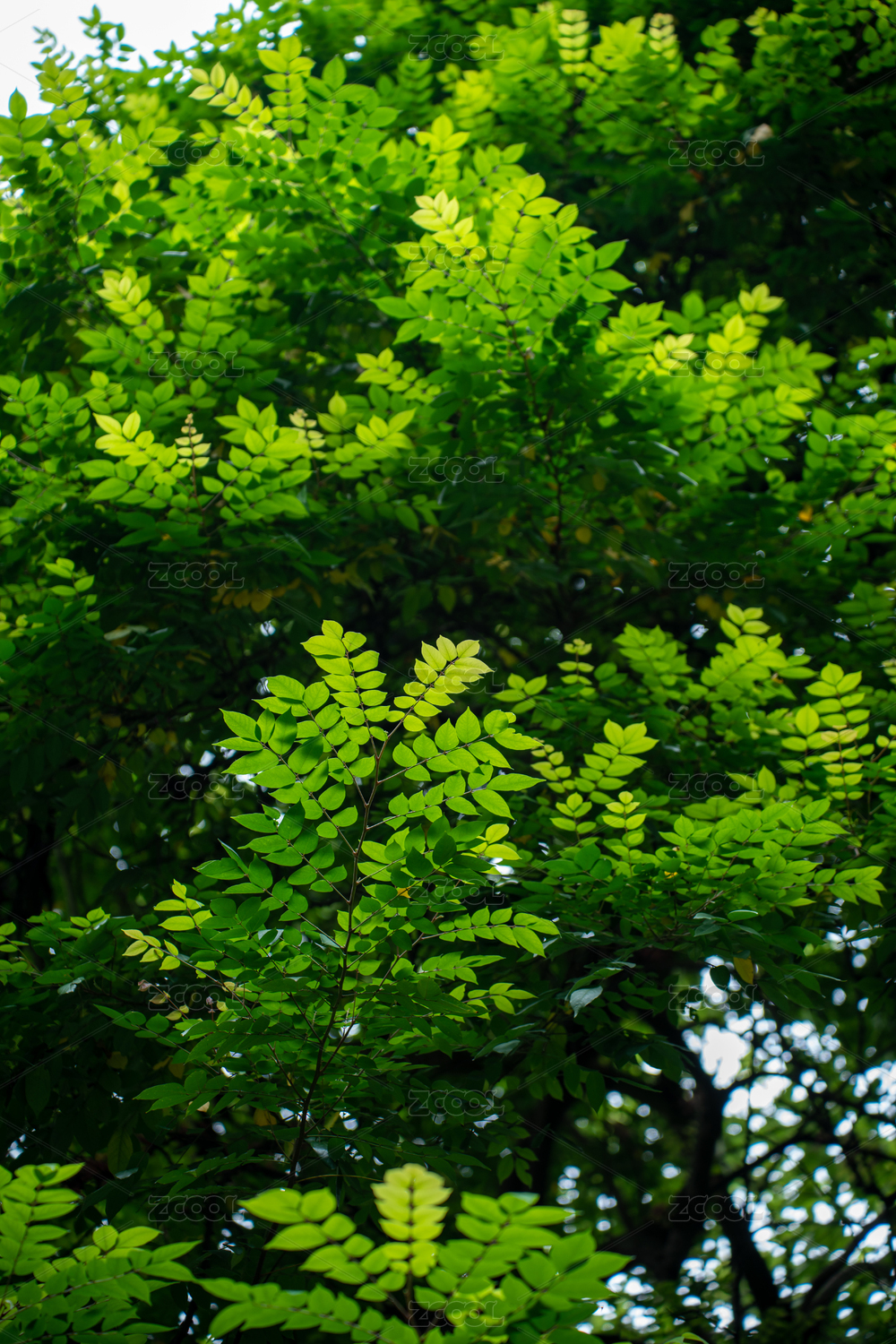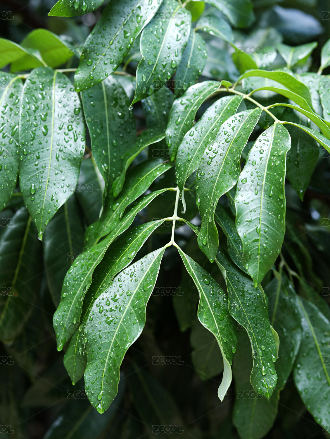 大自然中绿色的树叶叶子和上面的雨滴水珠