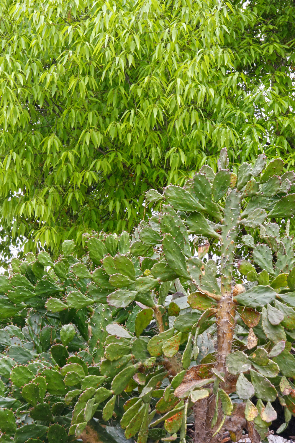 浙江温州楠溪江苍坡村中遍植的仙人掌与樟树