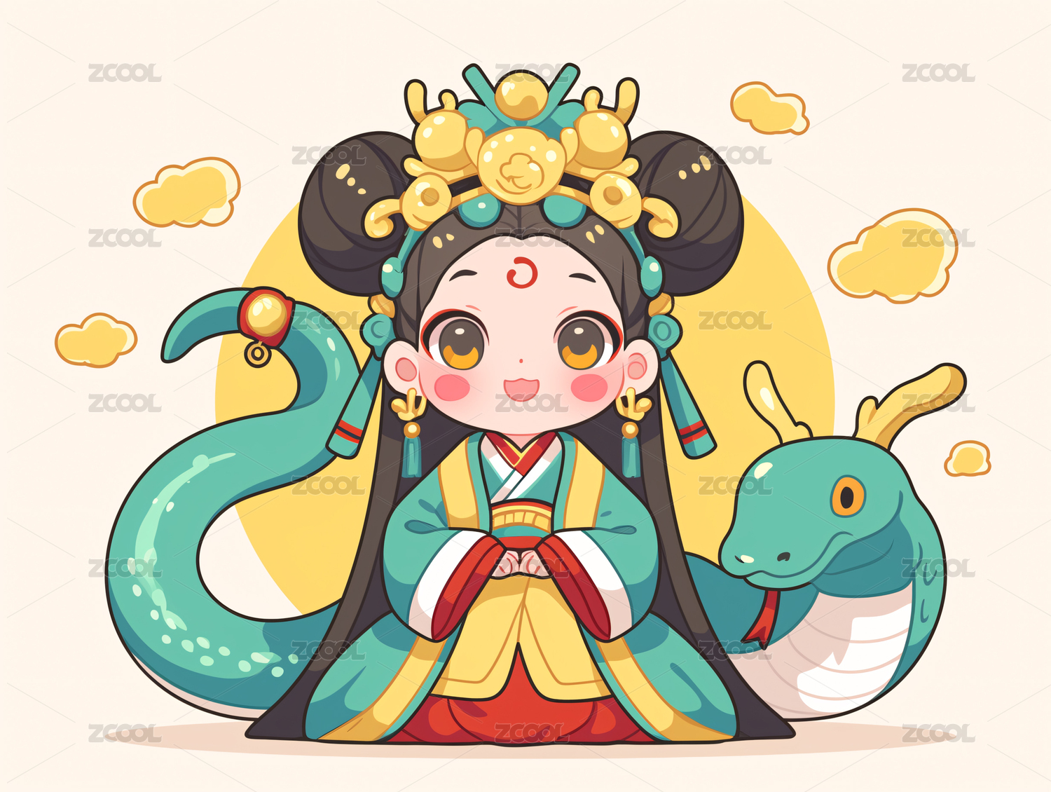卡通蛇年2025生肖蛇T恤图案印花插画