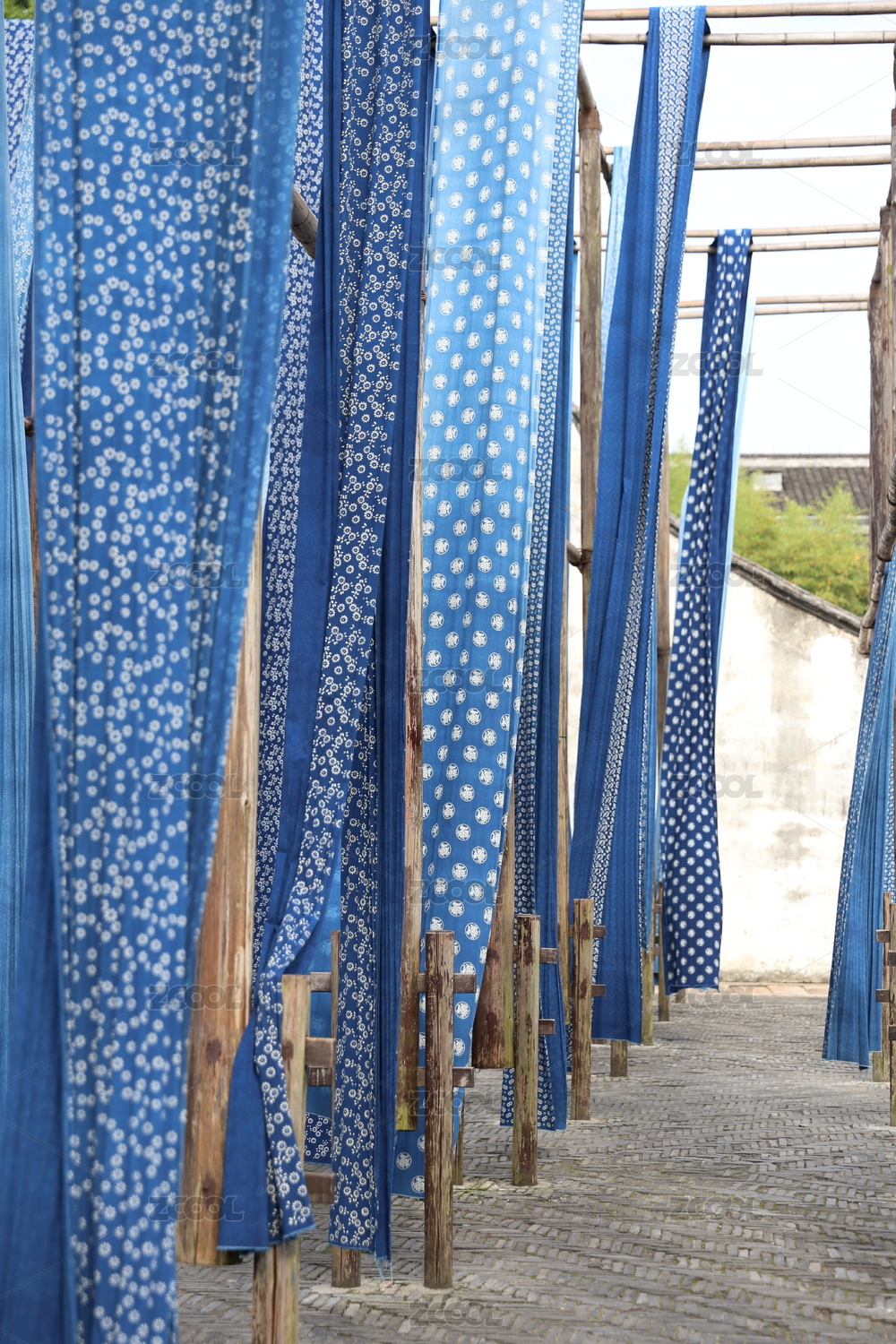 江南水乡古镇,浙江嘉兴桐乡乌镇的蓝印花布