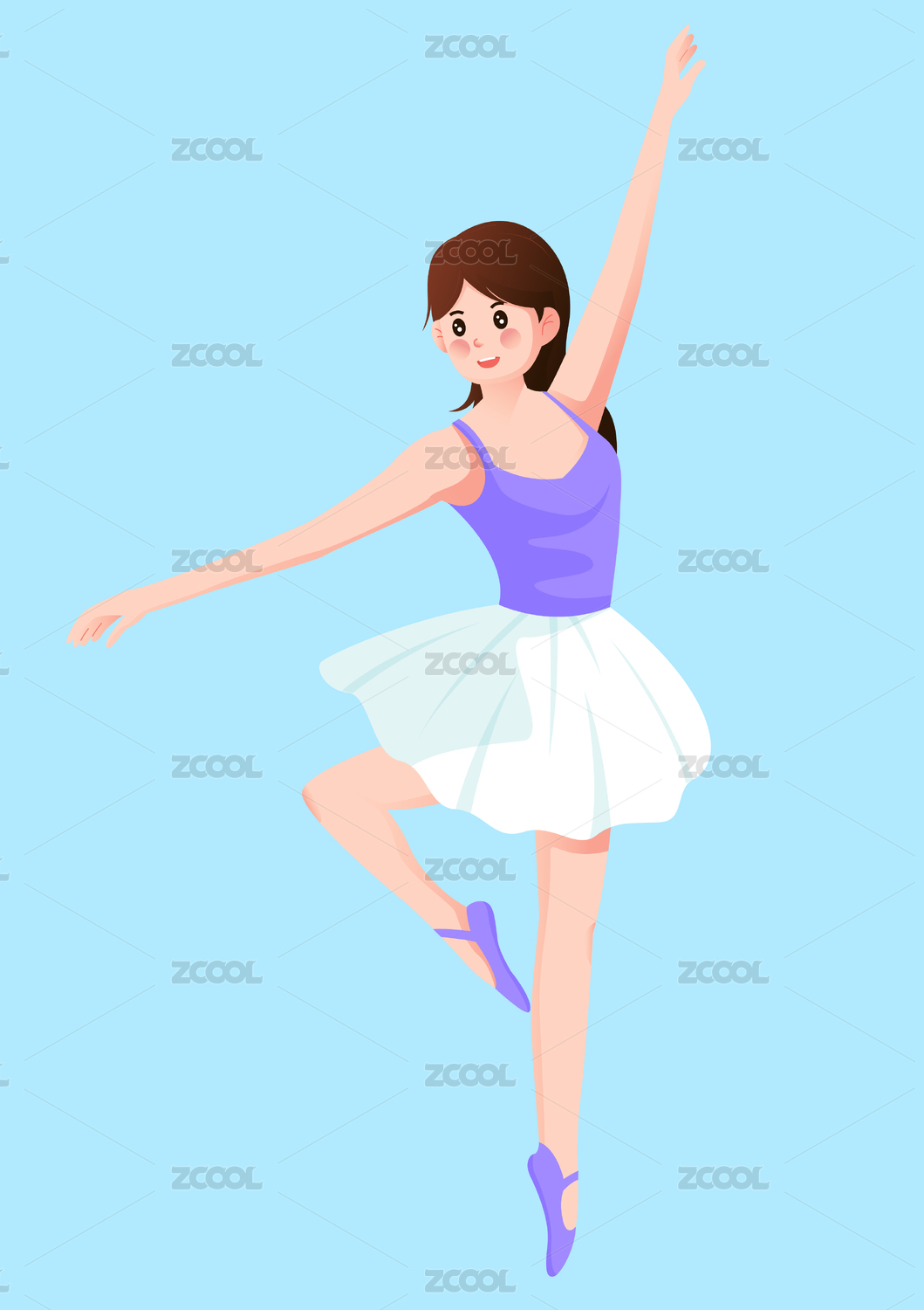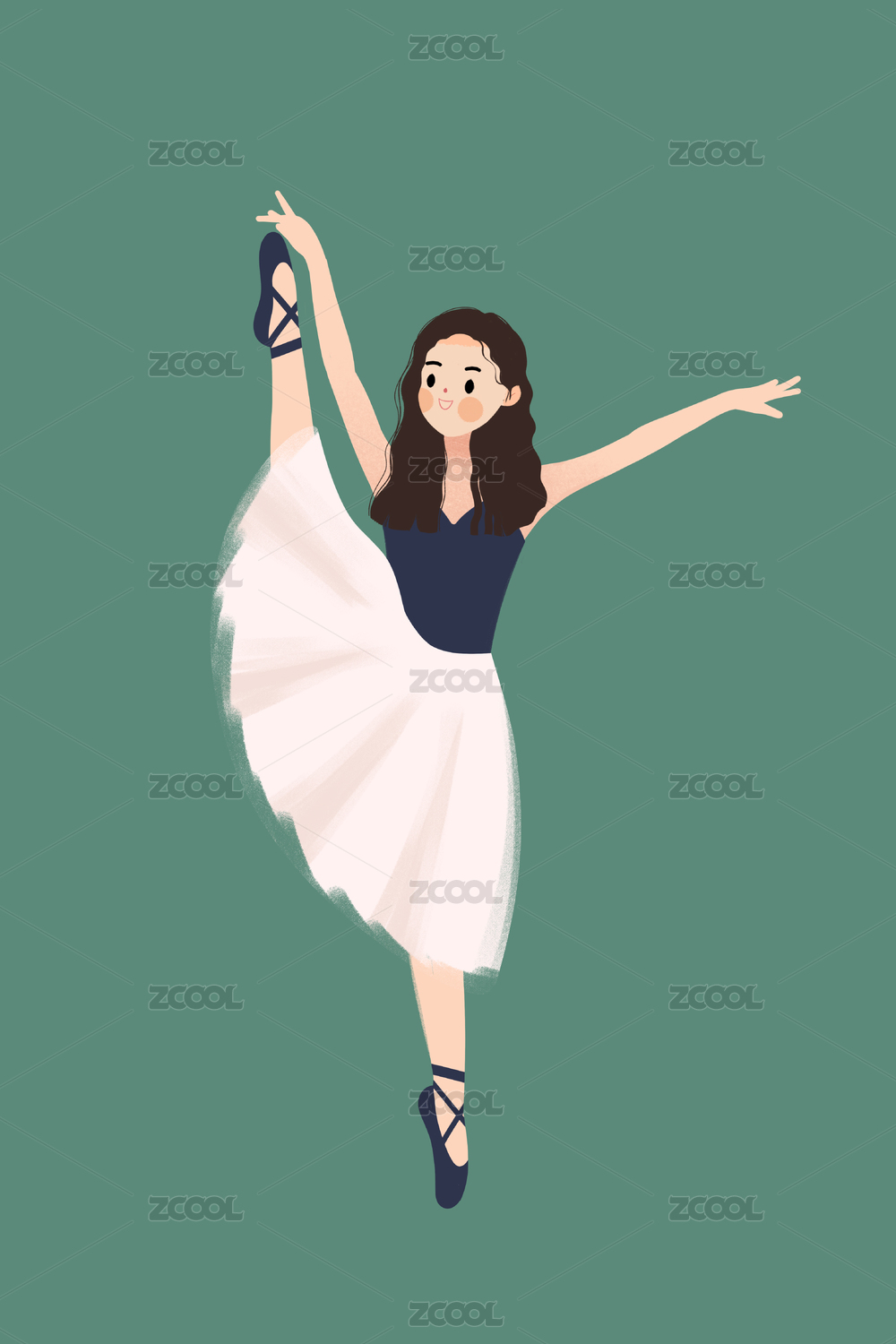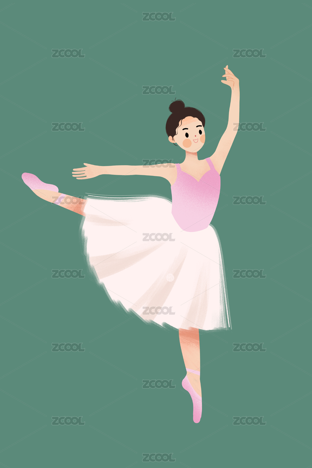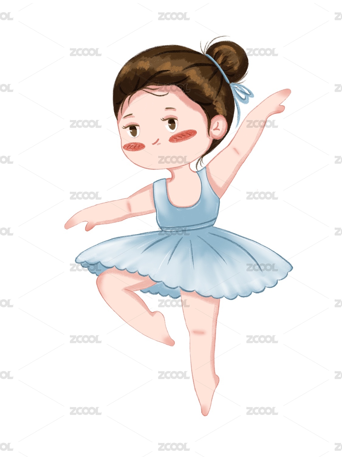 手绘扁平可爱人物插画 跳芭蕾舞的优雅小女孩