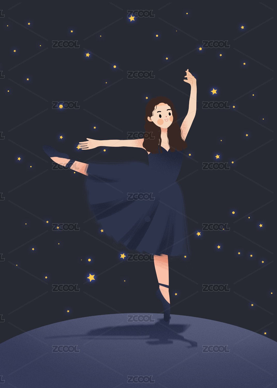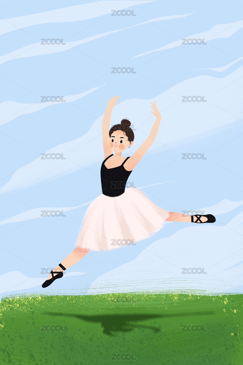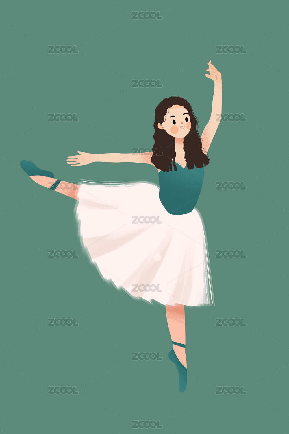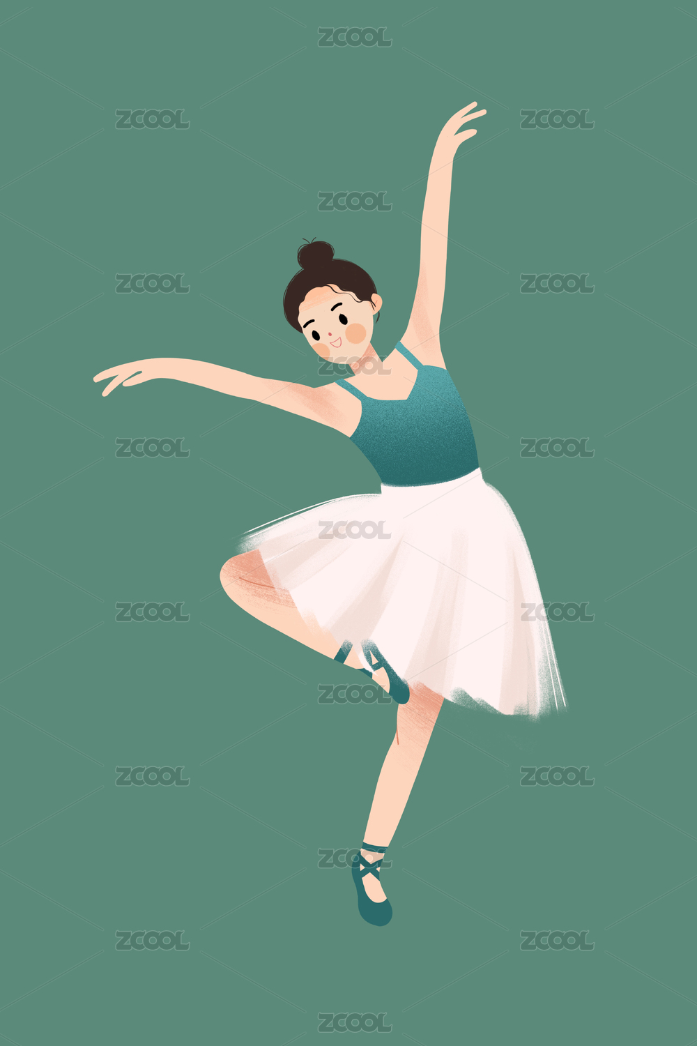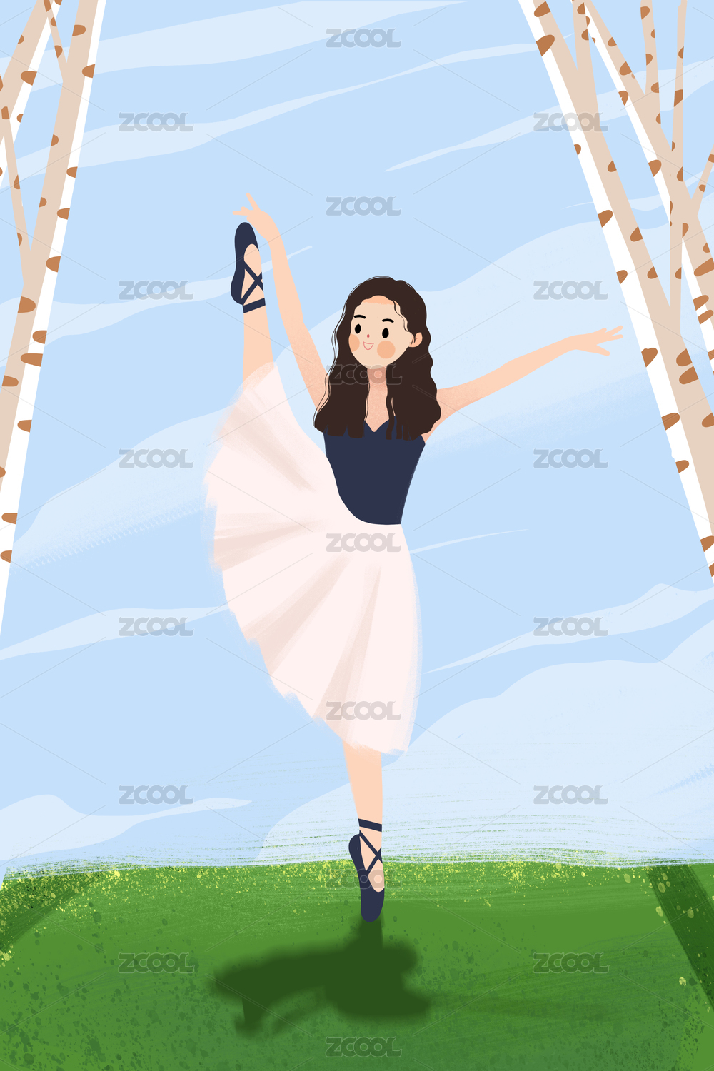 手绘扁平可爱人物插画 跳芭蕾舞的优雅小女孩