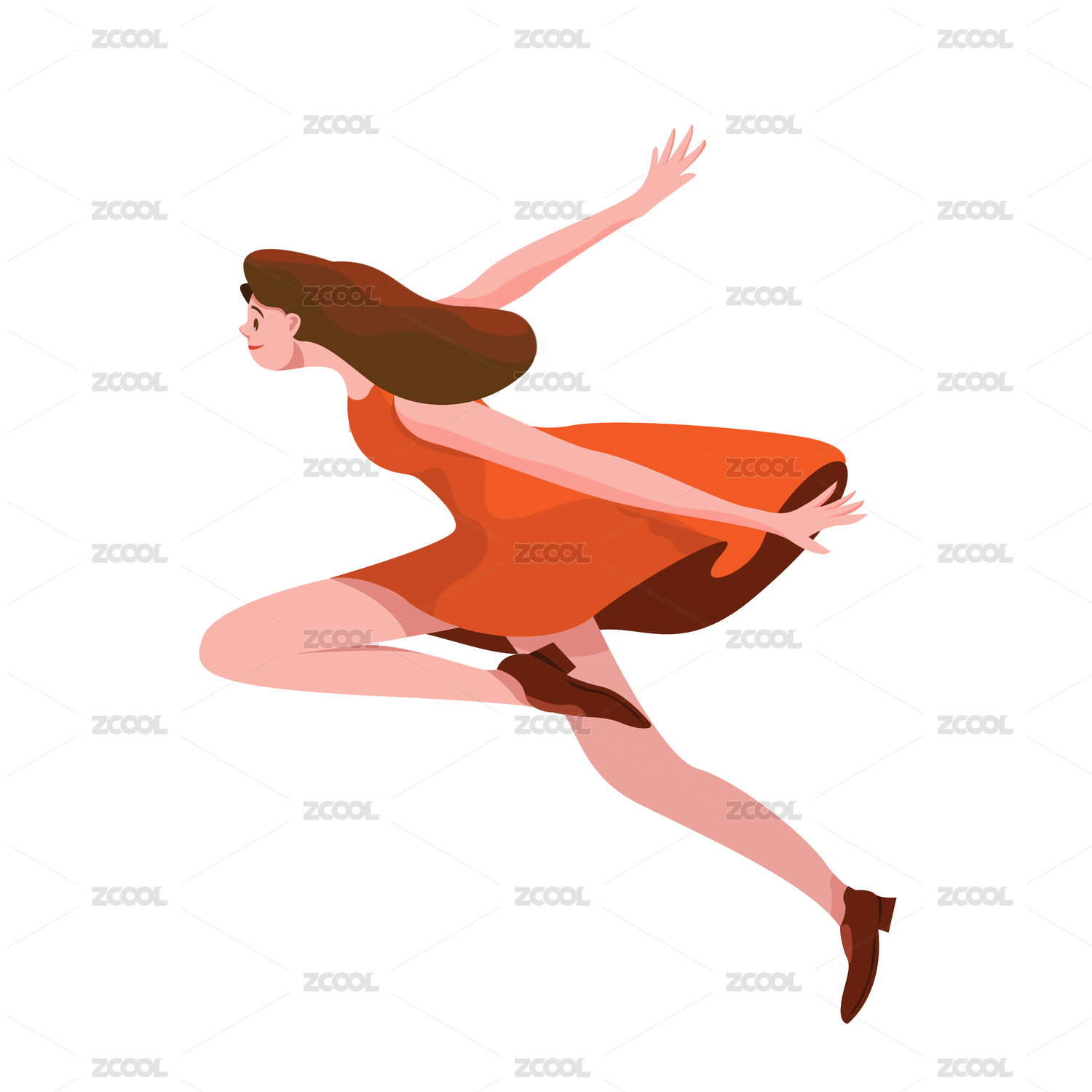 红裙少女迈开腿向前奔跑