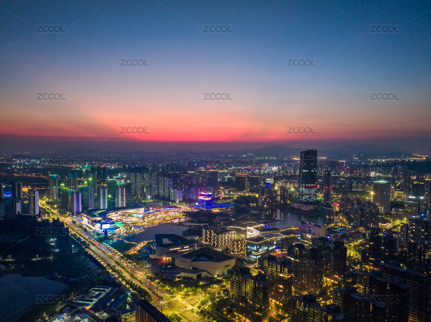 杭州滨江区萧山区城市建筑夜景风光航拍