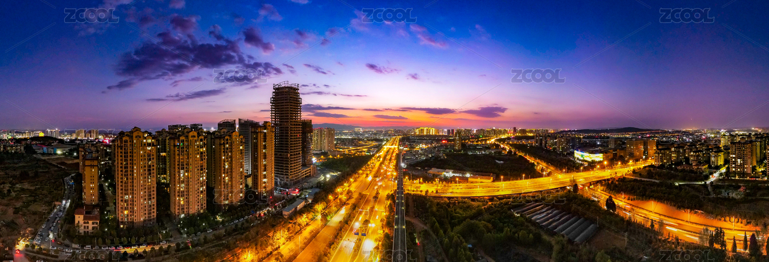 广东珠海市新香洲火烧云晚霞夜景航拍