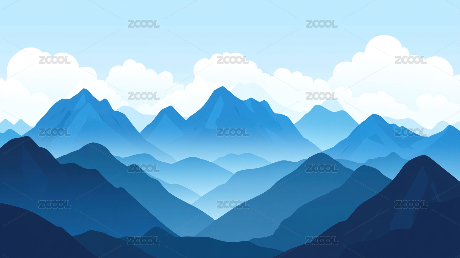 蓝色山脉景观插画