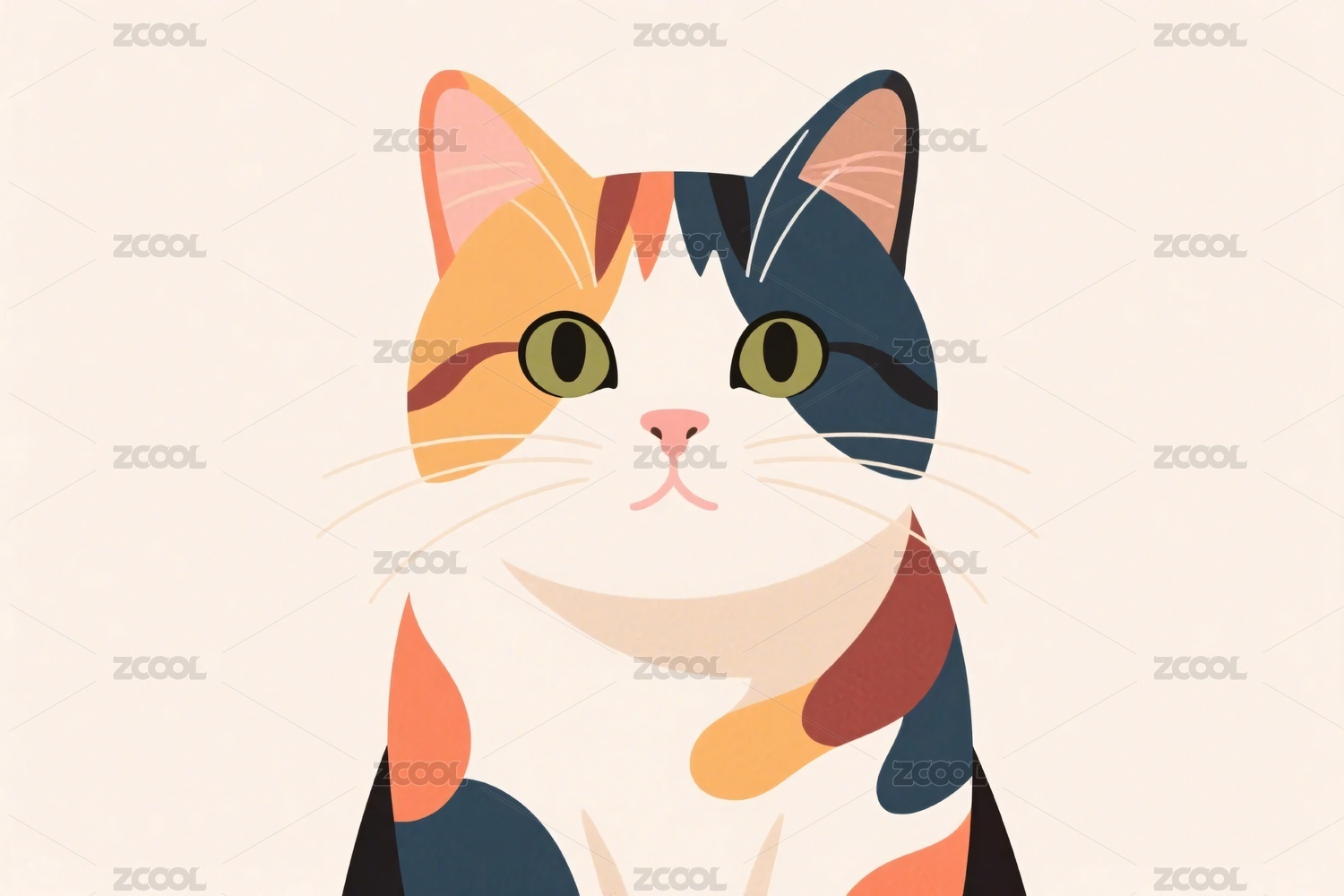 数码波西米亚猫猫图案装饰抽象图形海报背景