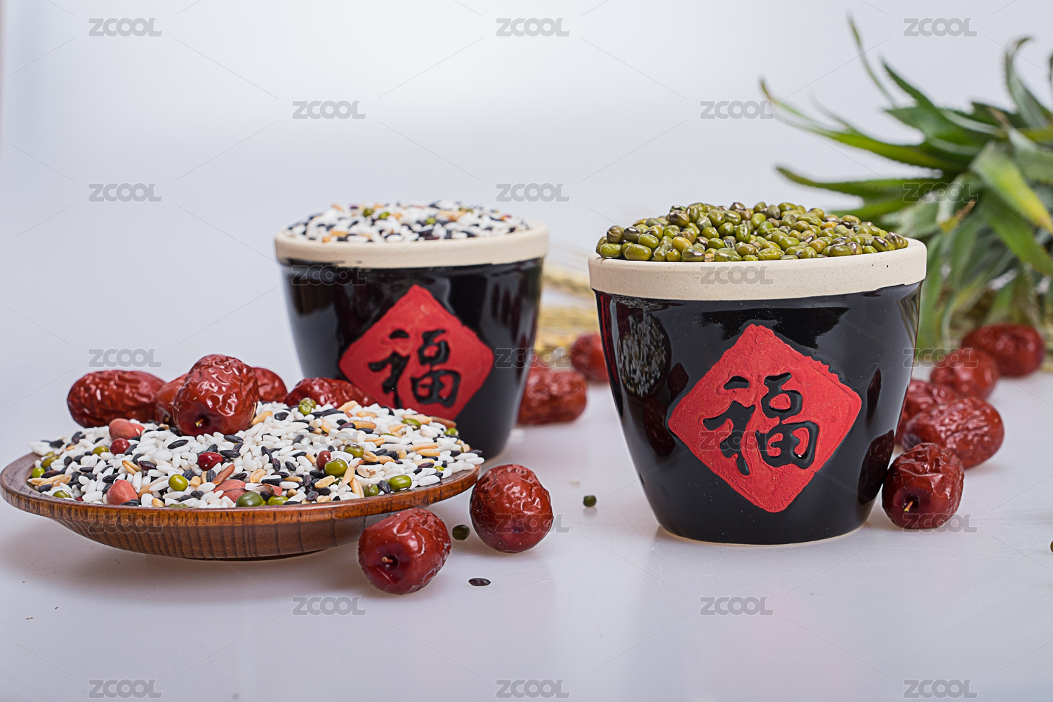 摄影,水平画幅,彩色图片,影棚拍摄,无人,五谷杂粮,稻谷,红枣,绿豆,麦穗