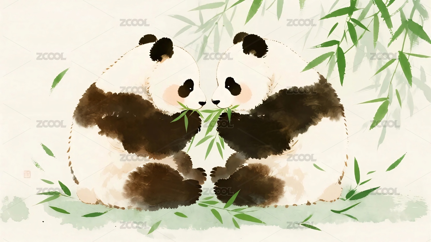 熊猫食竹手绘插画