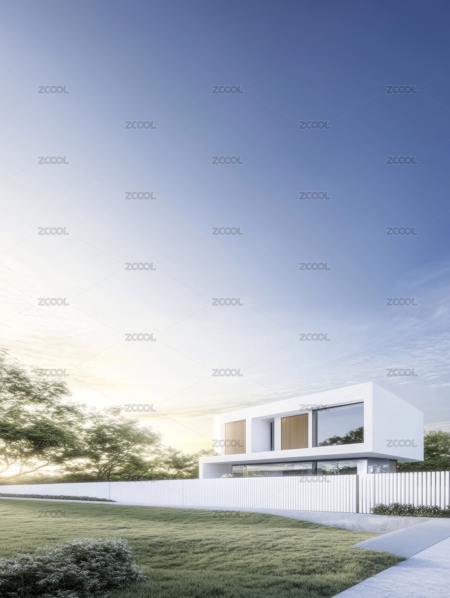 现代别墅日落景观