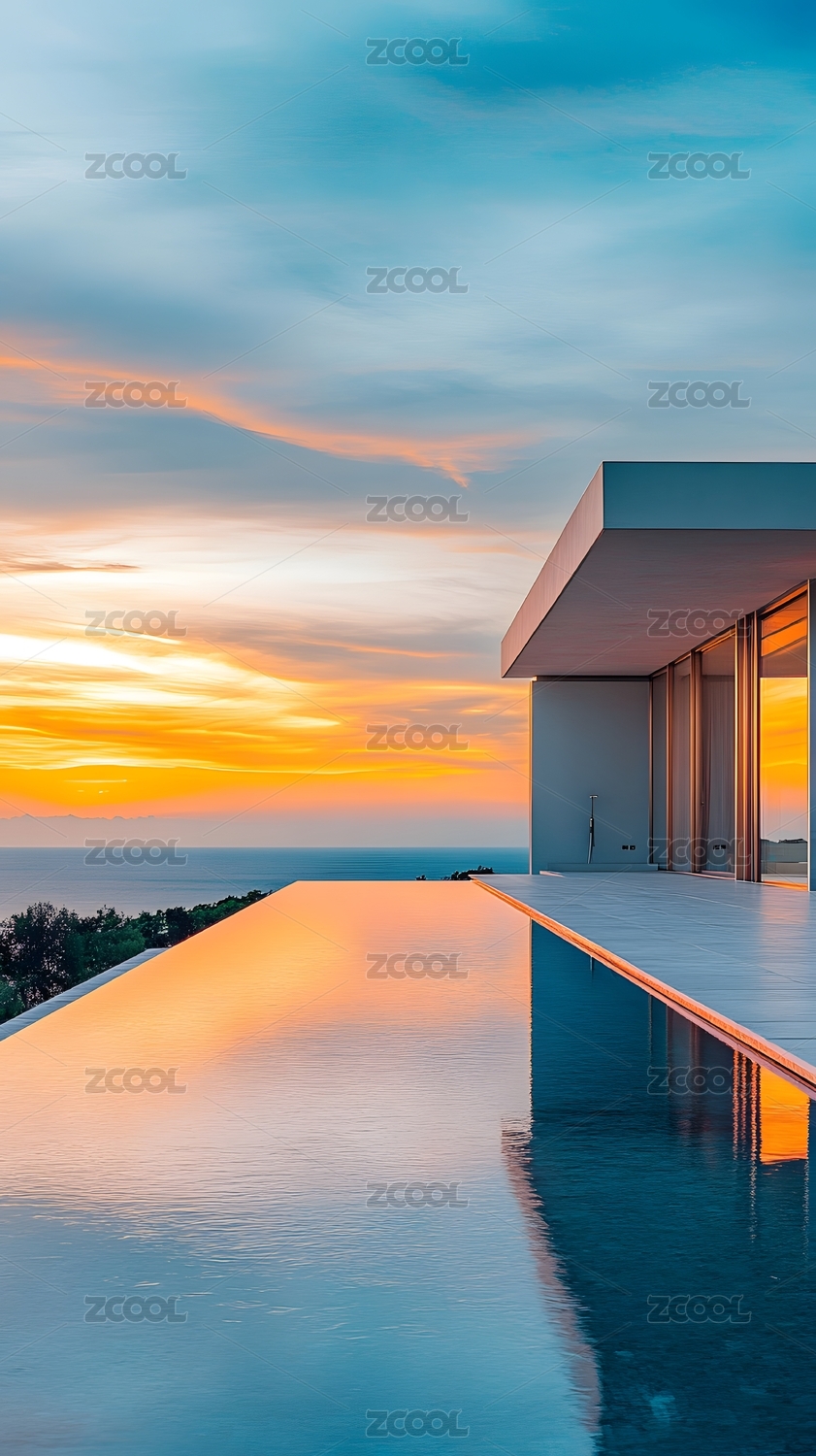 海边现代建筑的宁静时光