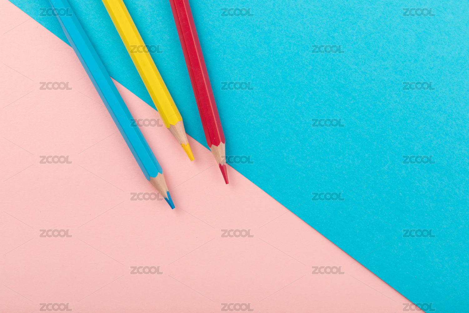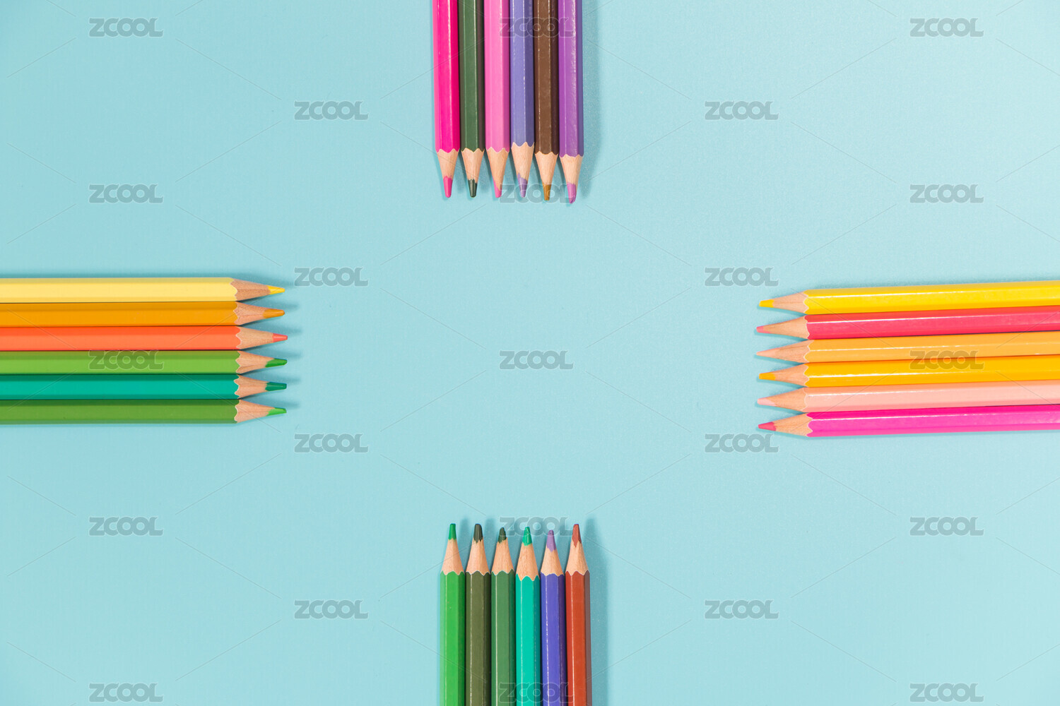 正上方拍摄的彩色玩具块核彩色的铅笔静物照