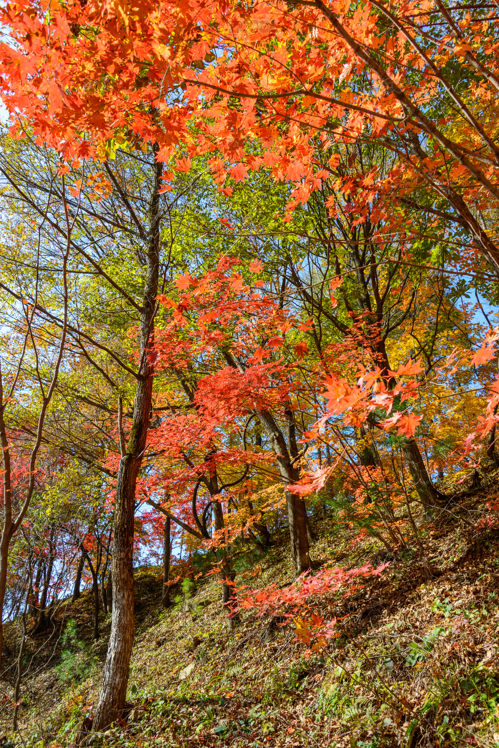 沈阳本溪老边沟 秋天多彩枫叶林间小路风光