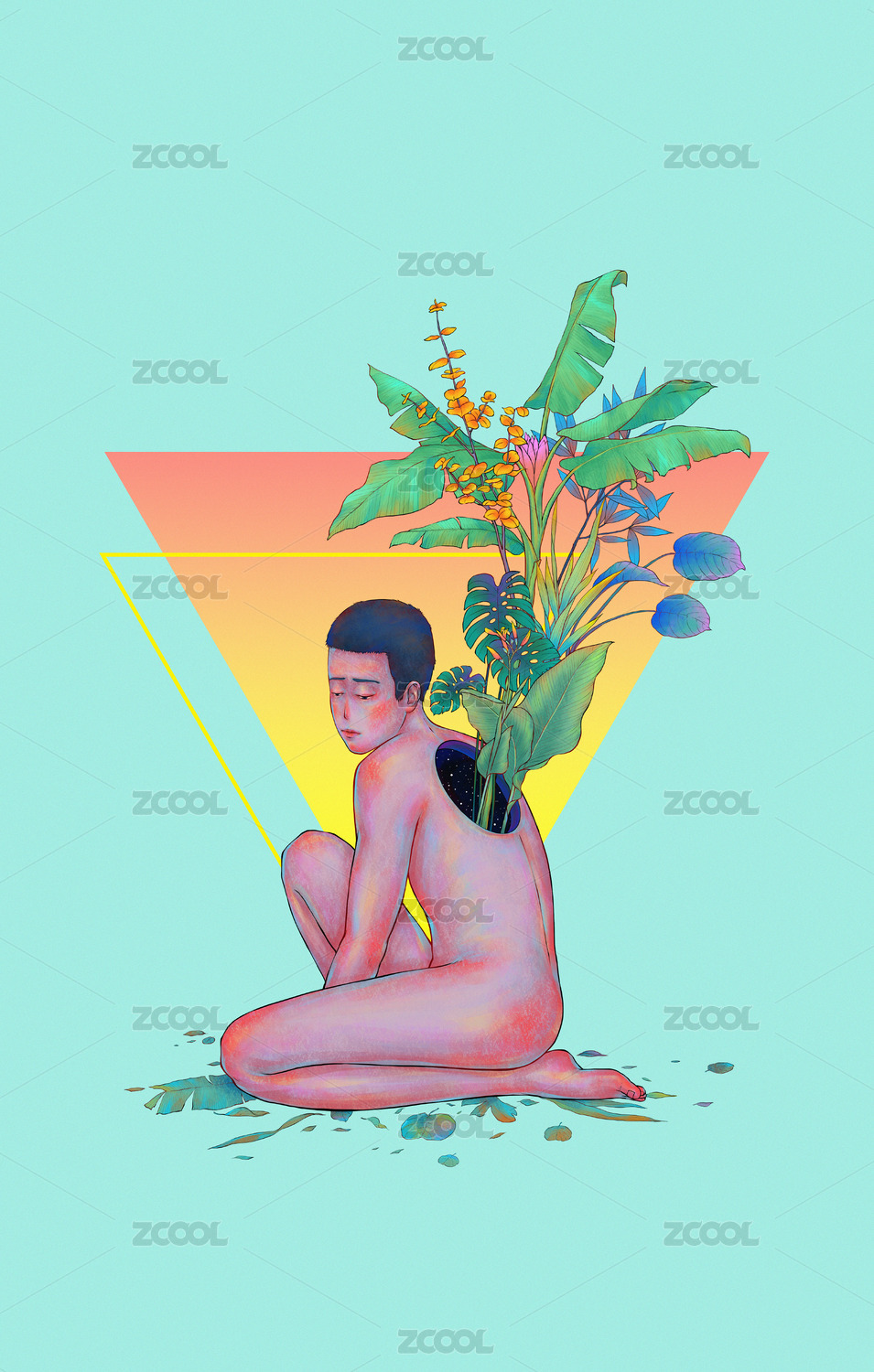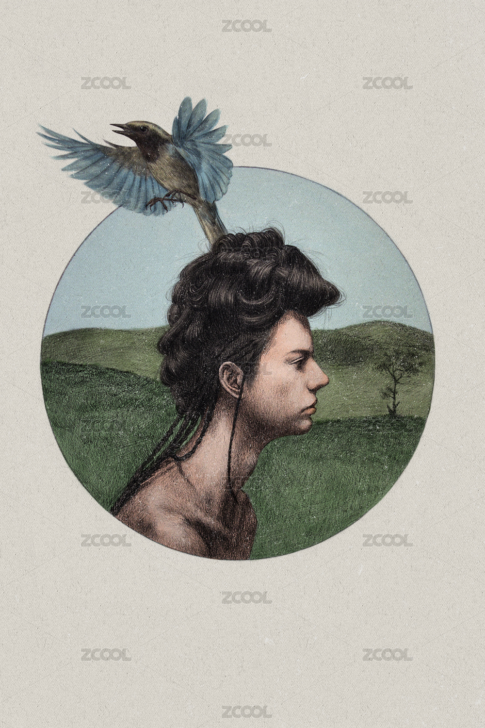 人物,鸟,复古,人物插画,宁静,忧郁,素描色稿