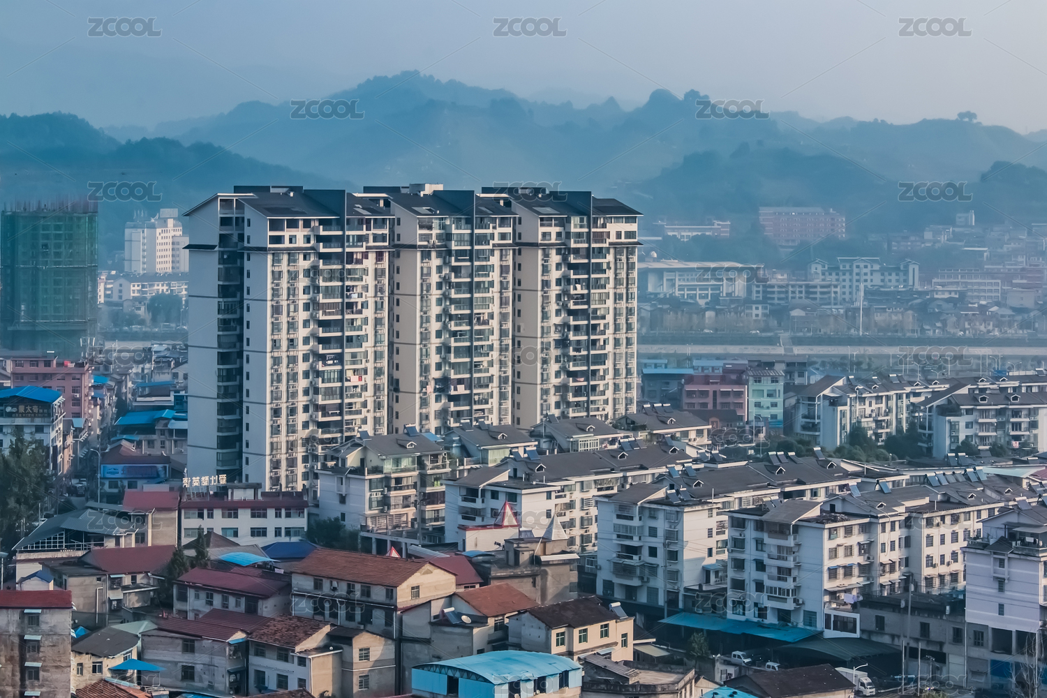 云南省大理州南涧县黄昏城区高楼大厦建筑