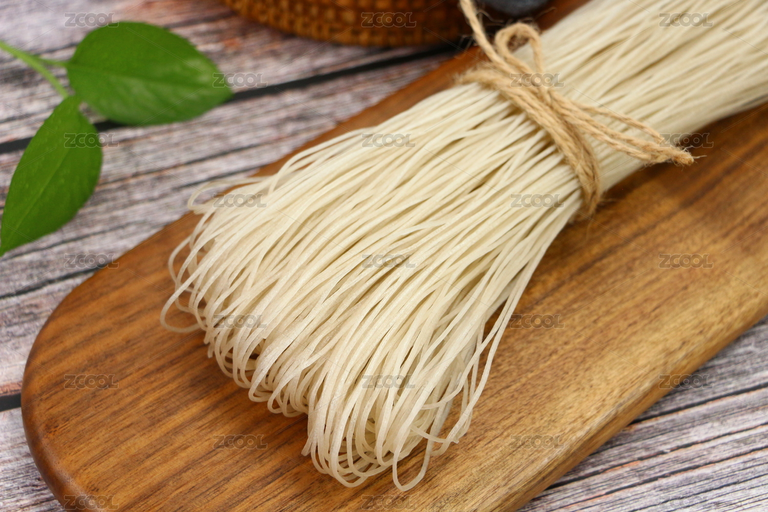 木纹背景上摆放的晒干粉条
