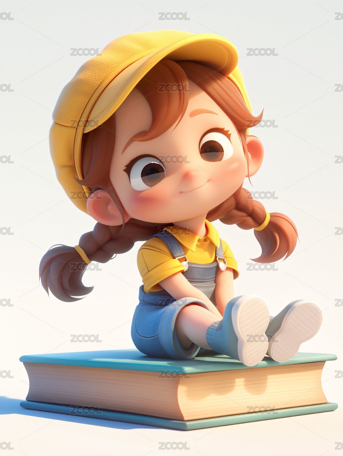 3D正在看书的女孩卡通插画