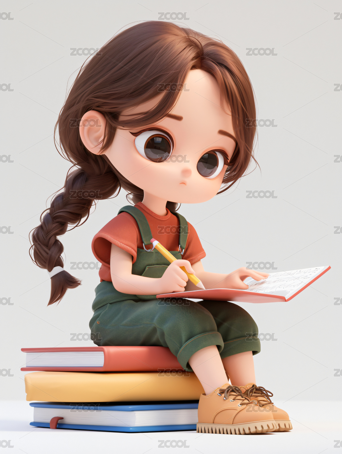 读书的可爱女孩3d插画