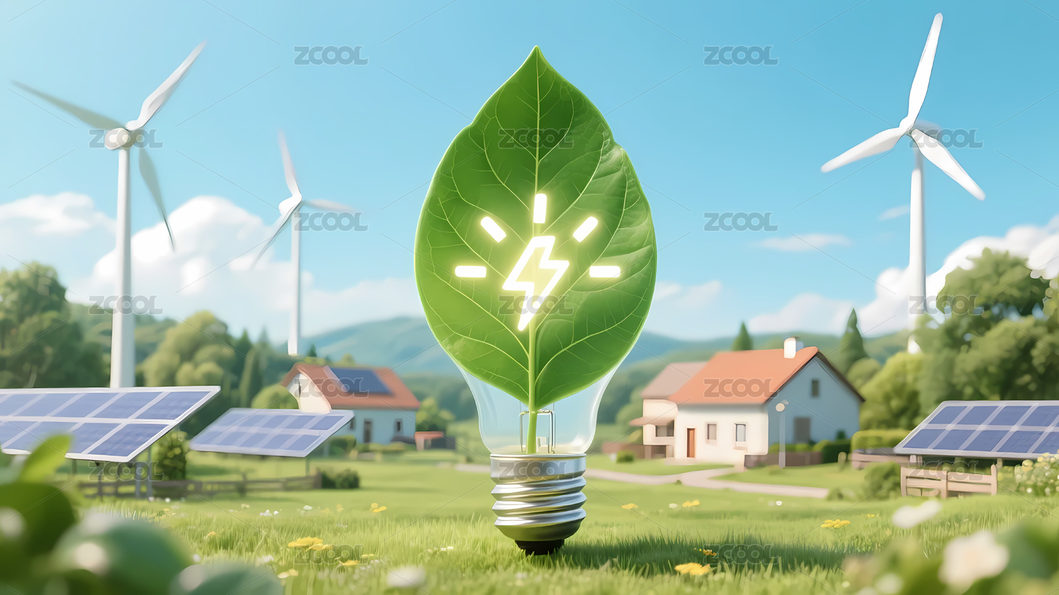 环保,太阳能,灯,能源,场景,3D,风能,工业,电力,电池