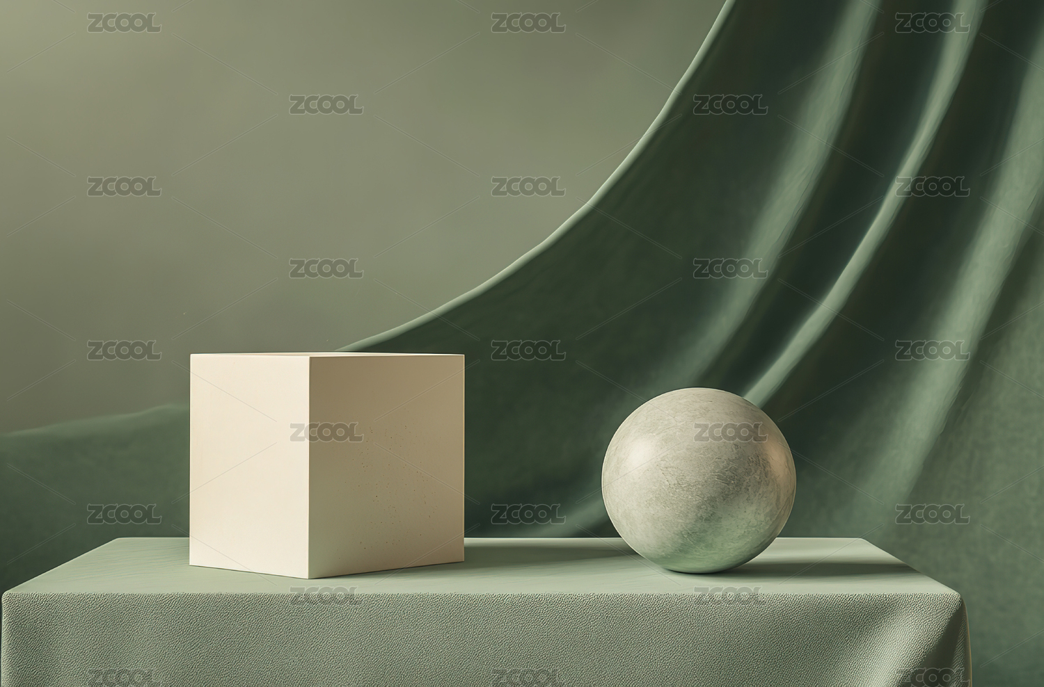 展台,简约,极简,干净,电商,展示,3D,绿色,青色,几何