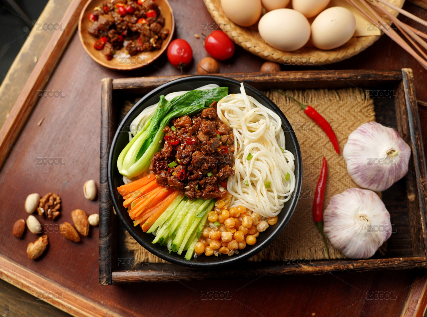 美食,特色,小吃,面条,炸酱面,老北京炸酱面,炸酱,豌豆,胡萝卜,黄瓜丝