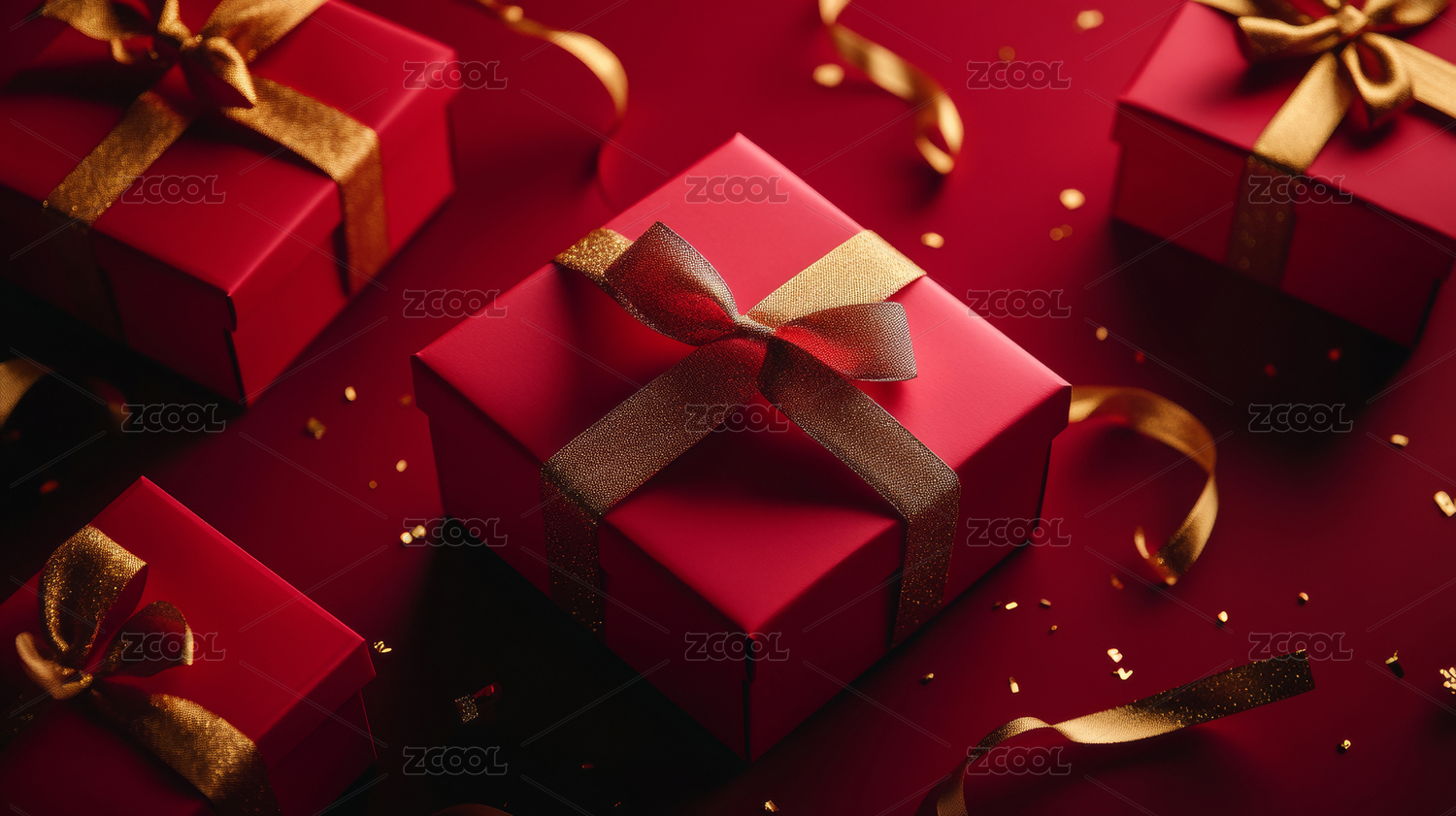 红色圣诞节电商风格喜庆礼物盒子展示台