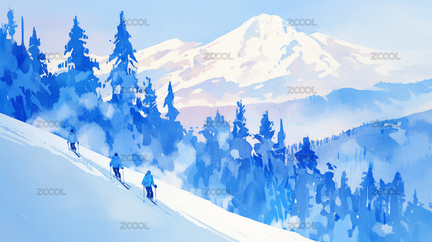 冬季,宁静,雪景,寒冷,户外,风景,自然,清新,雪山,运动