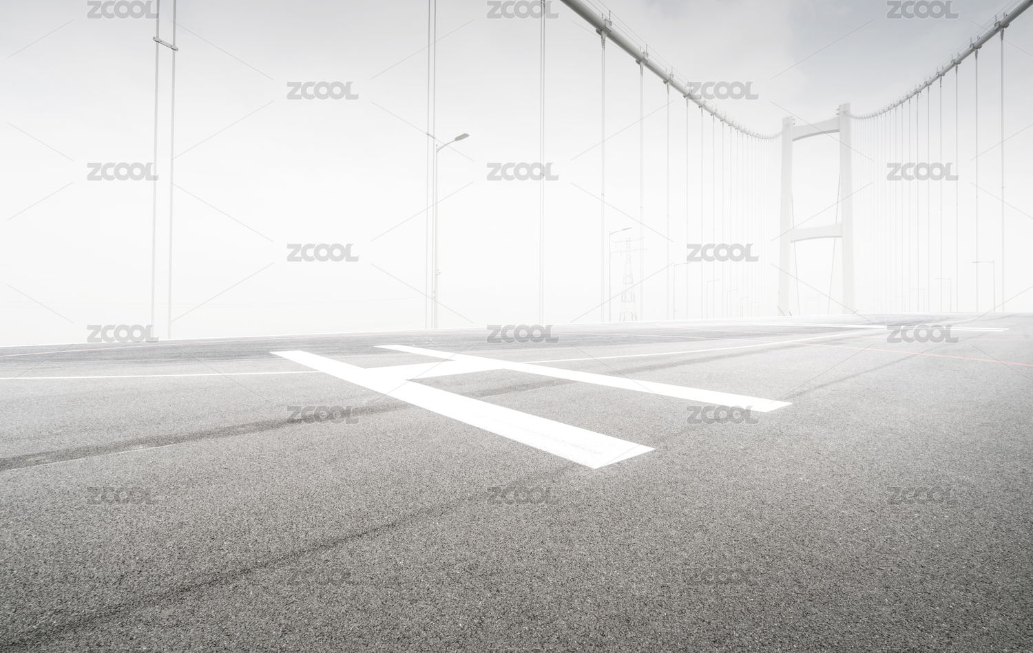 横跨长江悬索大桥下的柏油马路,江阴,中国