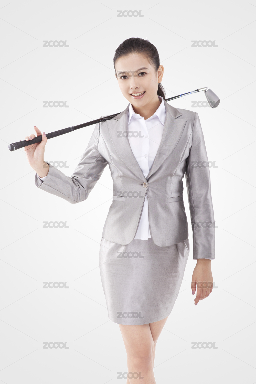 女商人用高尔夫球杆