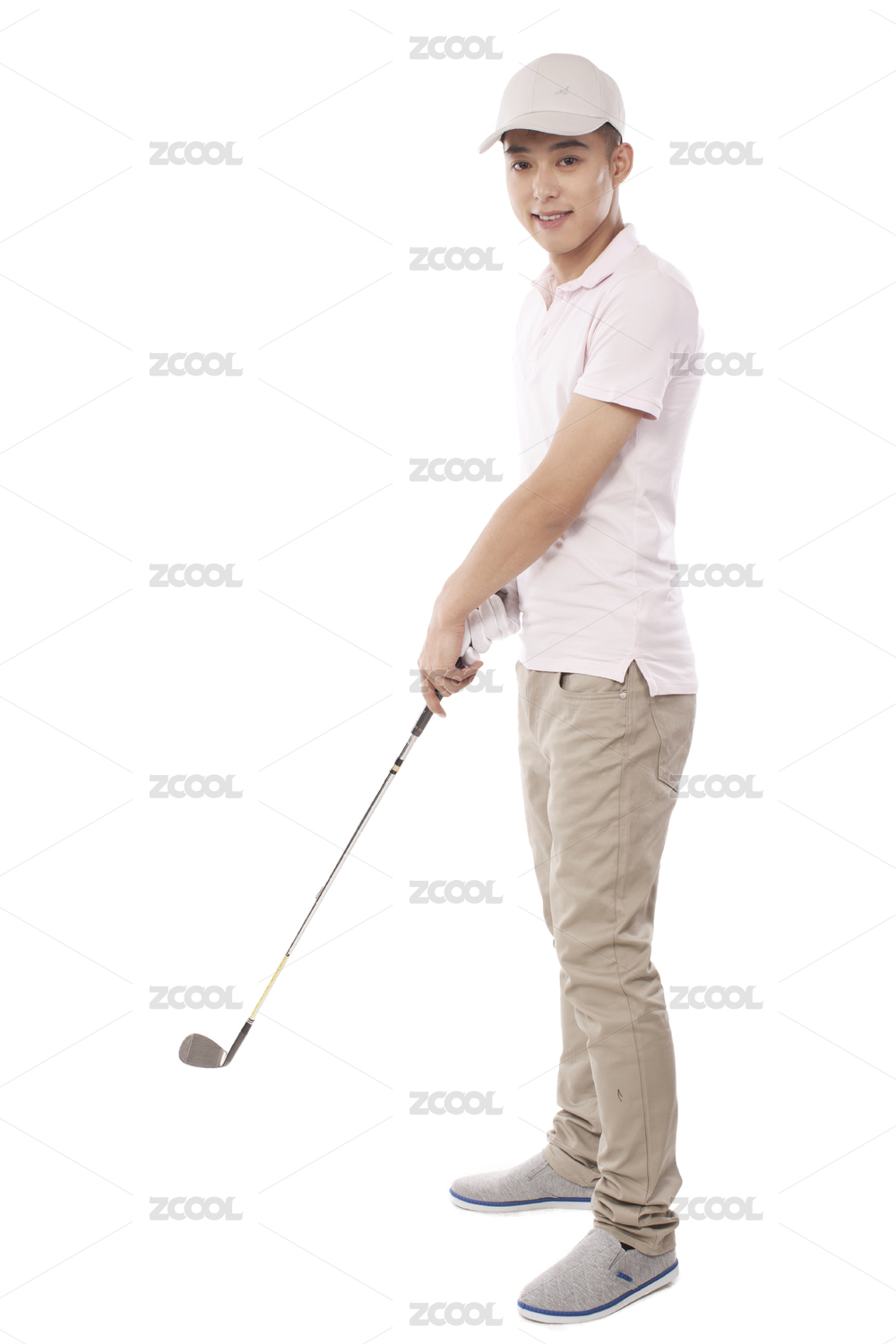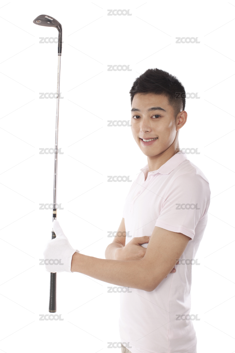 男高尔夫球手手握高尔夫球杆