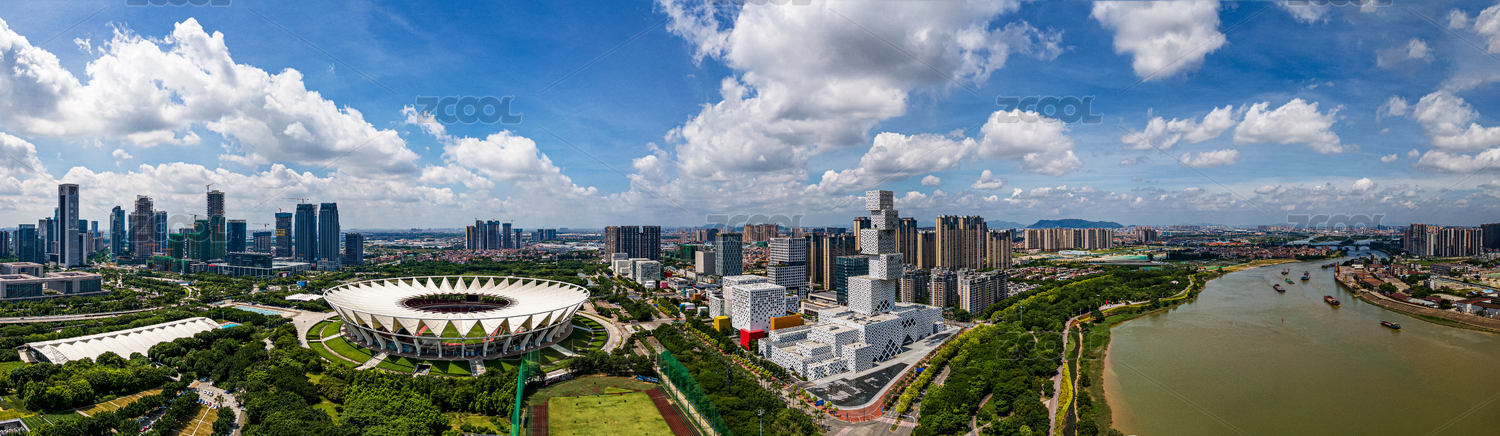 中国广东佛山新城和世纪莲体育中心城市天际线全景