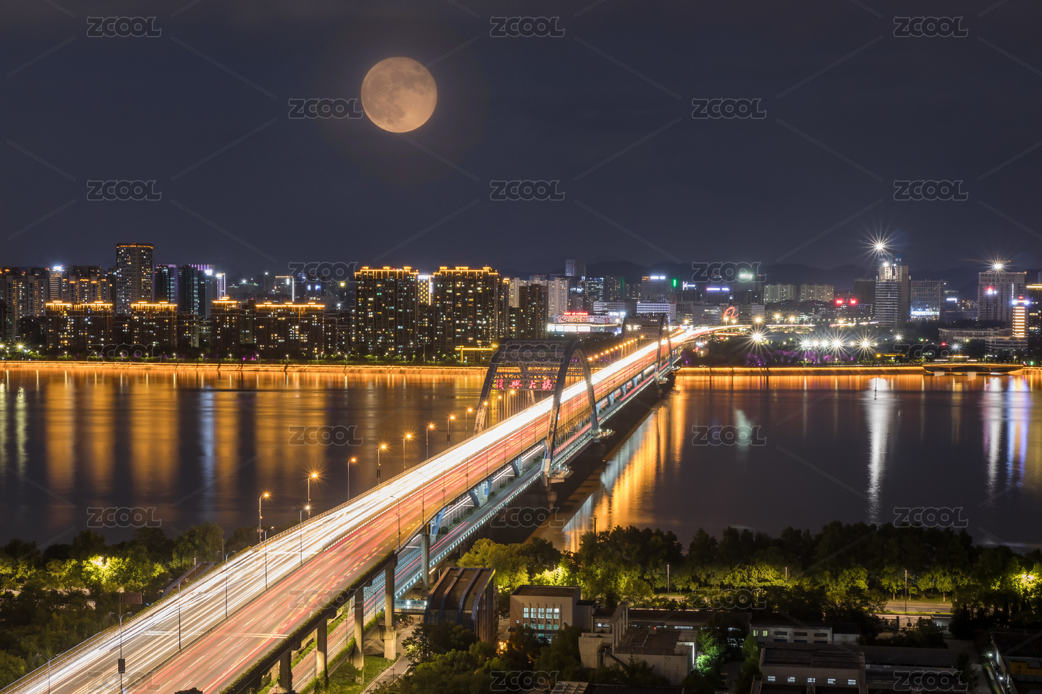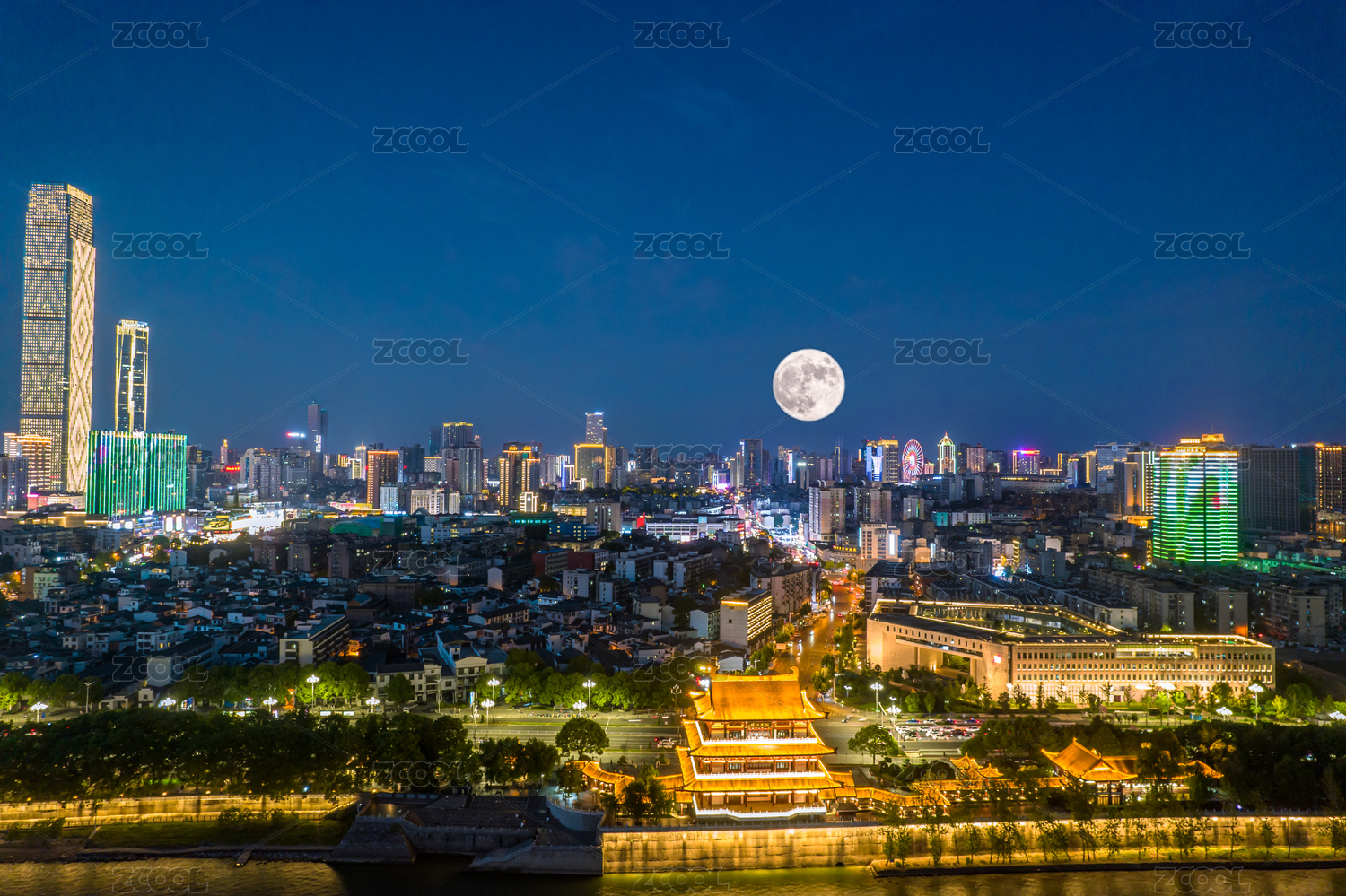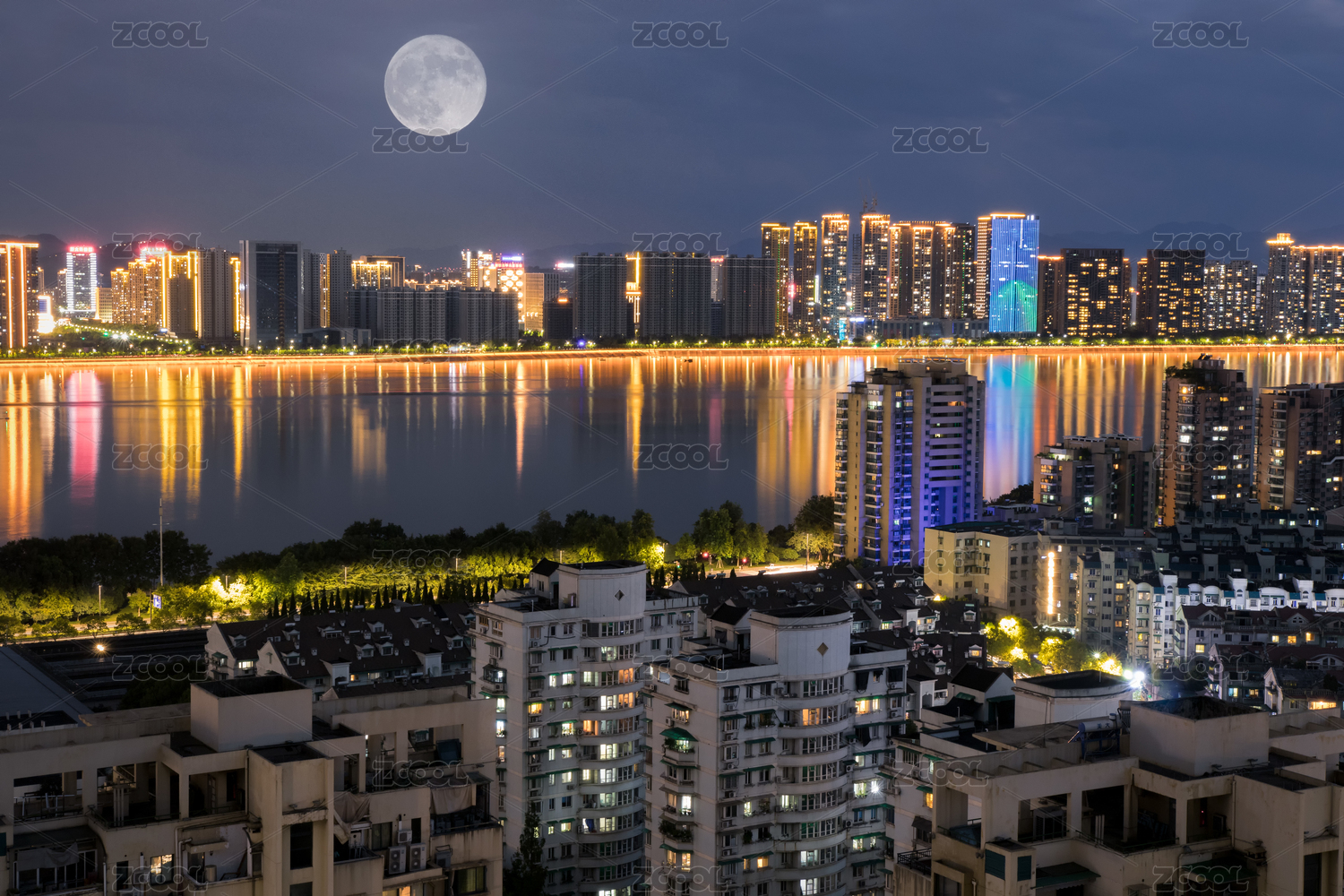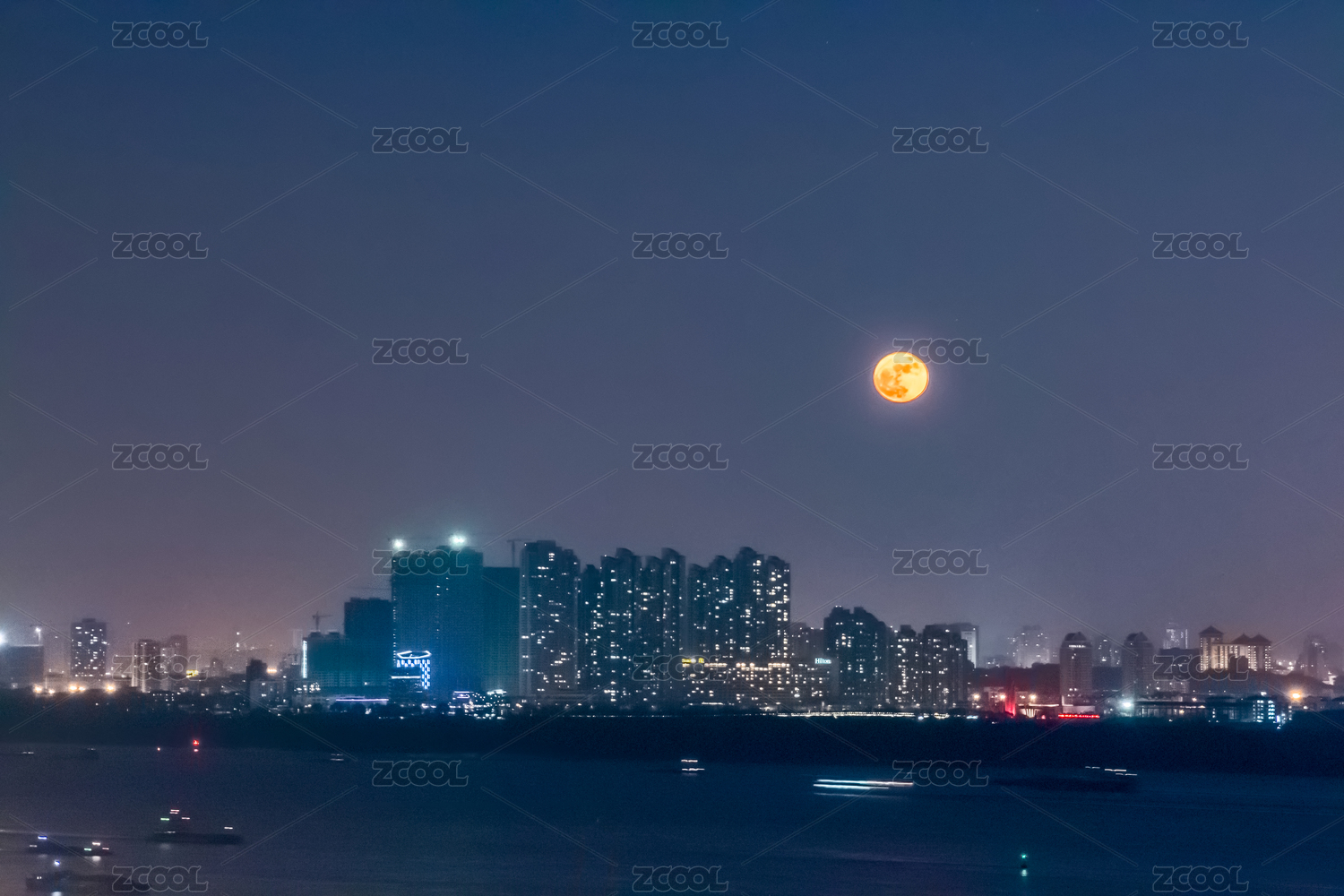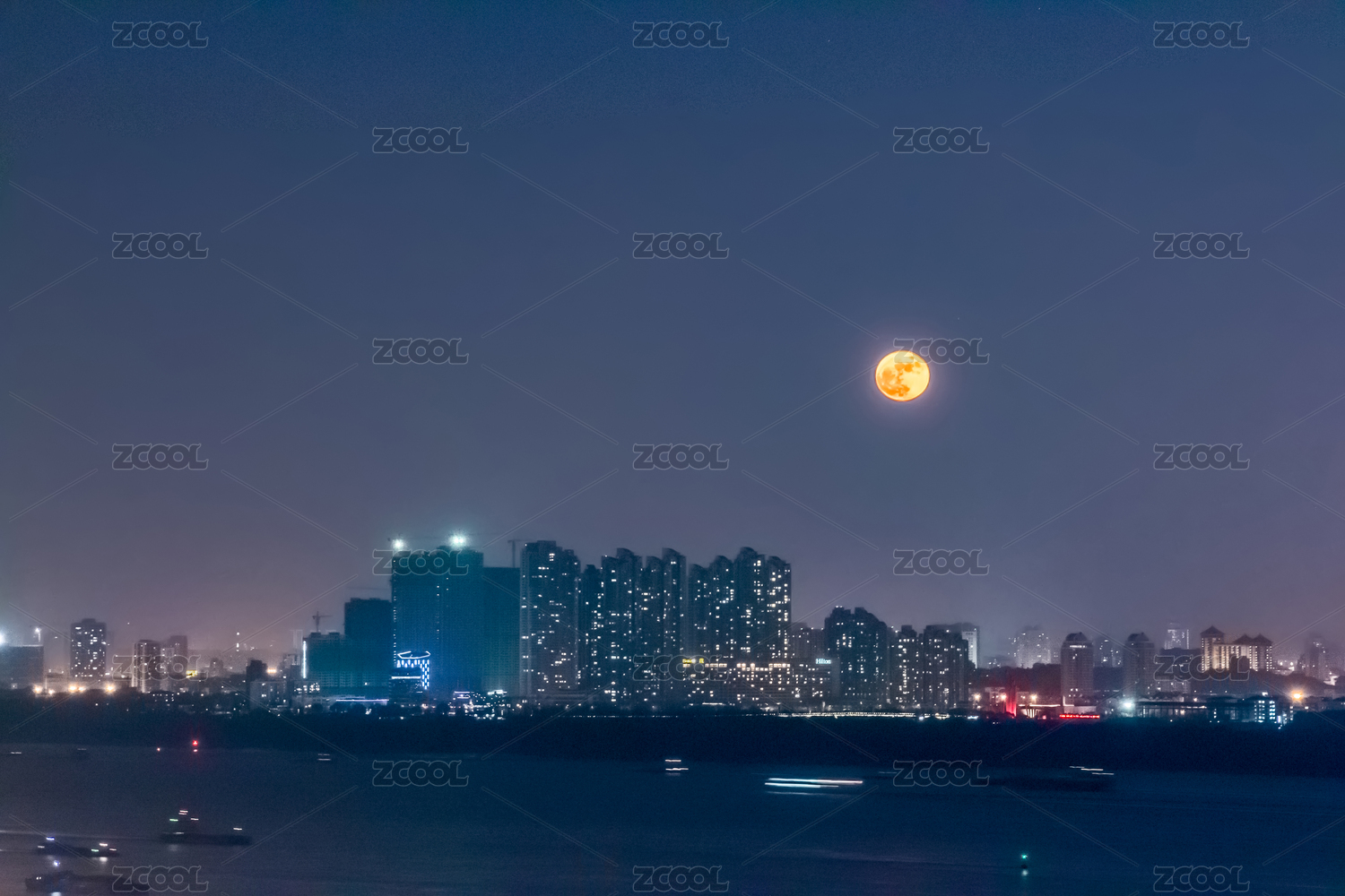 城市,建筑,月亮,满月,天空,武汉,长江,江滩,超级月亮