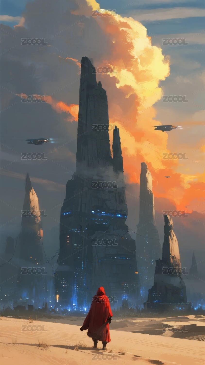 沙漠中的未来城市剪影